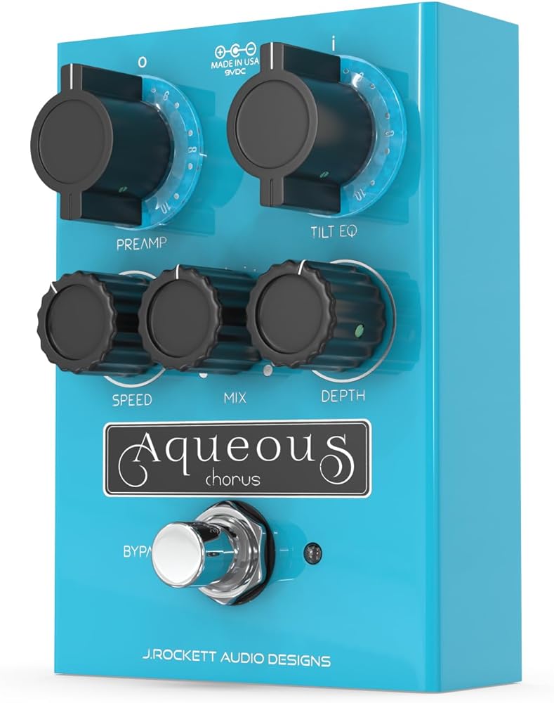 A chorus that can dial in the vintage tones of the past with its tilt EQ to recreate classic bucket brigade sounds or twist into a more modern tonal pallet and dial in the opposite to achieve lush watery Eric Johnson style sounds. Featuring a preamp section to avoid volume drops and enhances the overall feel of the unit. Players can find a myriad of sounds including rotating speaker sounds, crazy modulation effects and classic to vintage chorus or vibe sounds all in a form fitting enclosure.