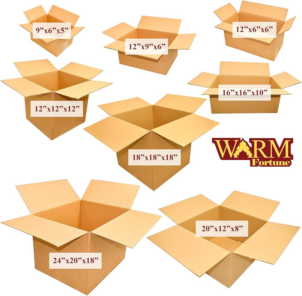 الصناديق الصغيرة والمتوسطة والكبيرة والكبيرة جدًا: مصنوعة من الورق المقوى غير المطبوع باللون البني، وتتميز الصناديق المموجة ذات الطبقة الواحدة بخفة الوزن والمتانة، وتستخدم للملفات المنزلية وملفات الأعمال والأدوات المنزلية الشخصية والمزيد.