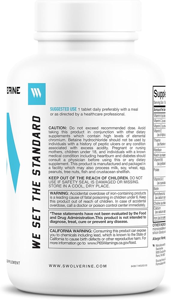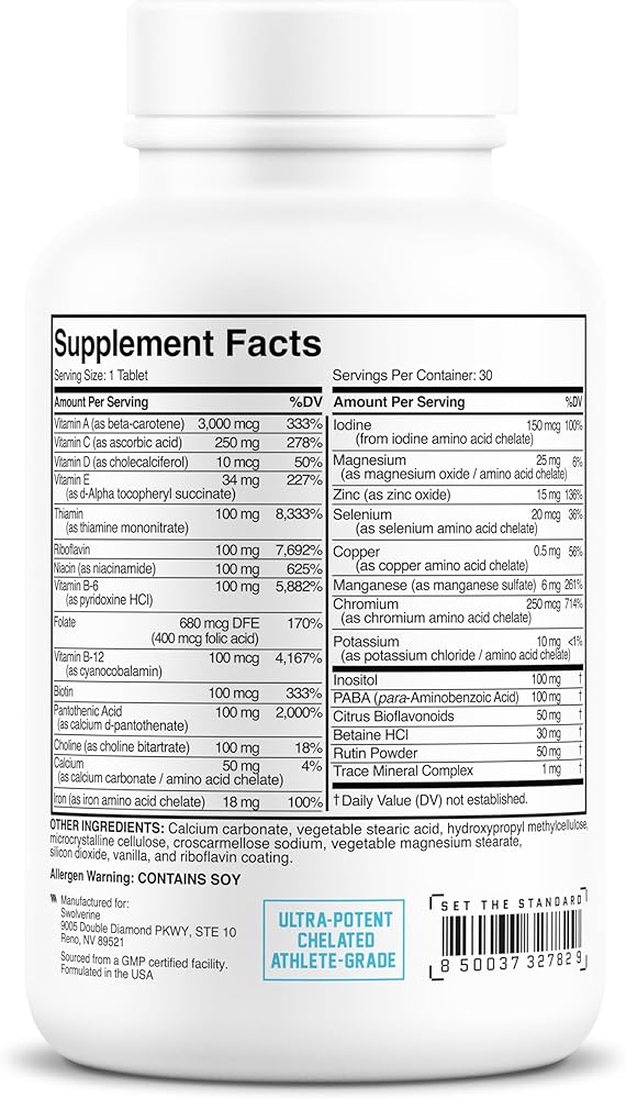 Swolverine Multivitamin is a high-potency daily formula designed to help fill nutrient gaps and support overall wellness for active men and women. With a blend of essential vitamins, minerals, and advanced cofactors, it delivers comprehensive daily support in just one tablet.