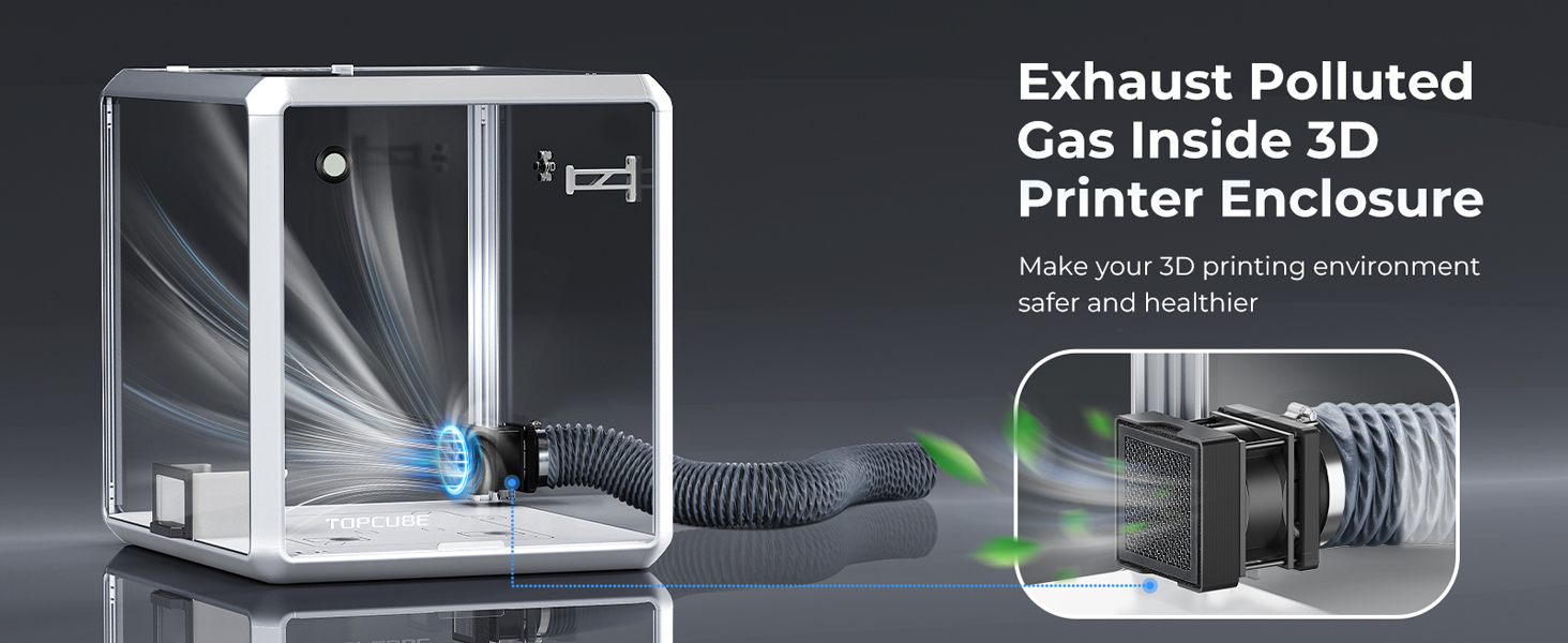 【توافق واسع】متوافق مع جميع حاويات الطابعة ثلاثية الأبعاد من سلسلة TOPCUBE. إذا لم يكن الغلاف القماشي الخاص بك يحتوي على فتحة عادم خارجية، فيرجى إنشاء واحدة وفقًا لمواصفات منفذ العادم لدينا. ملحوظة: غير متوافق مع الطابعات ثلاثية الأبعاد.