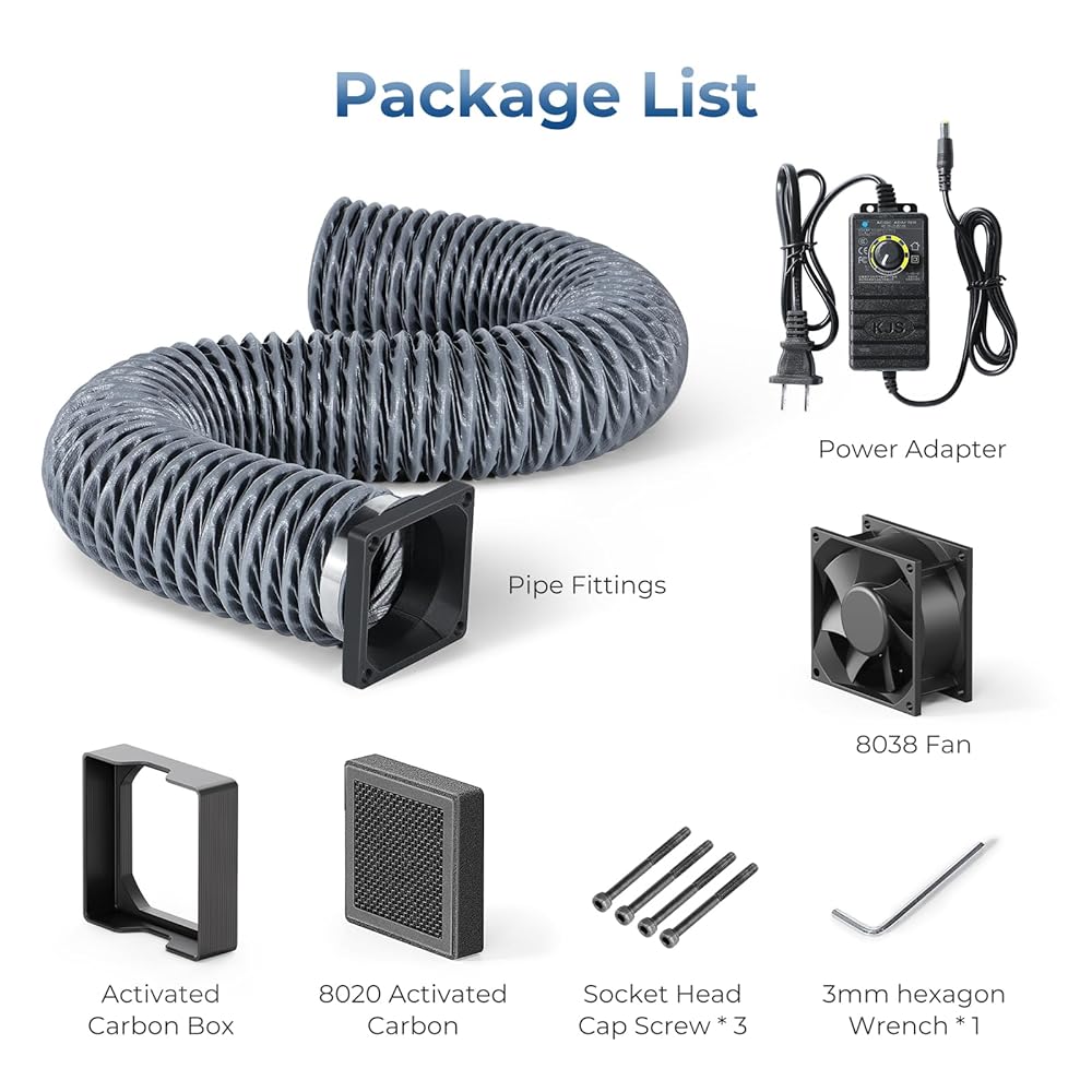 【روائح العوادم والدخان والغبار】تعمل على تهوية الدخان والروائح والغبار الناعم بشكل فعال من داخل علبة الطابعة ثلاثية الأبعاد، مما يساعد على خلق بيئة طباعة أكثر نظافة وراحة حتى تتمكن من التركيز على الاستمتاع بعملية الطباعة.