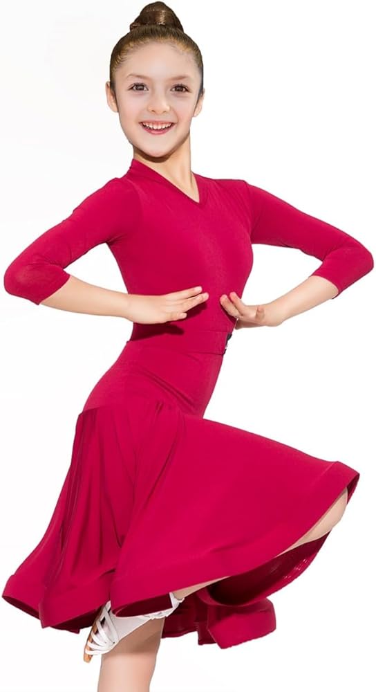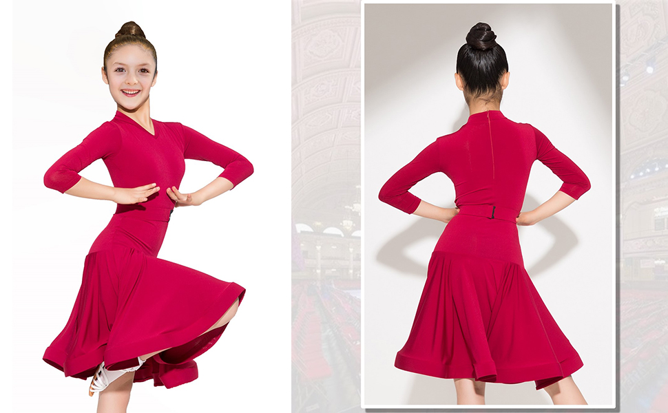GD3137 Kid Latin Ballroom Dance Professional V Shaped Collar Style Race/Training Dress for Girl