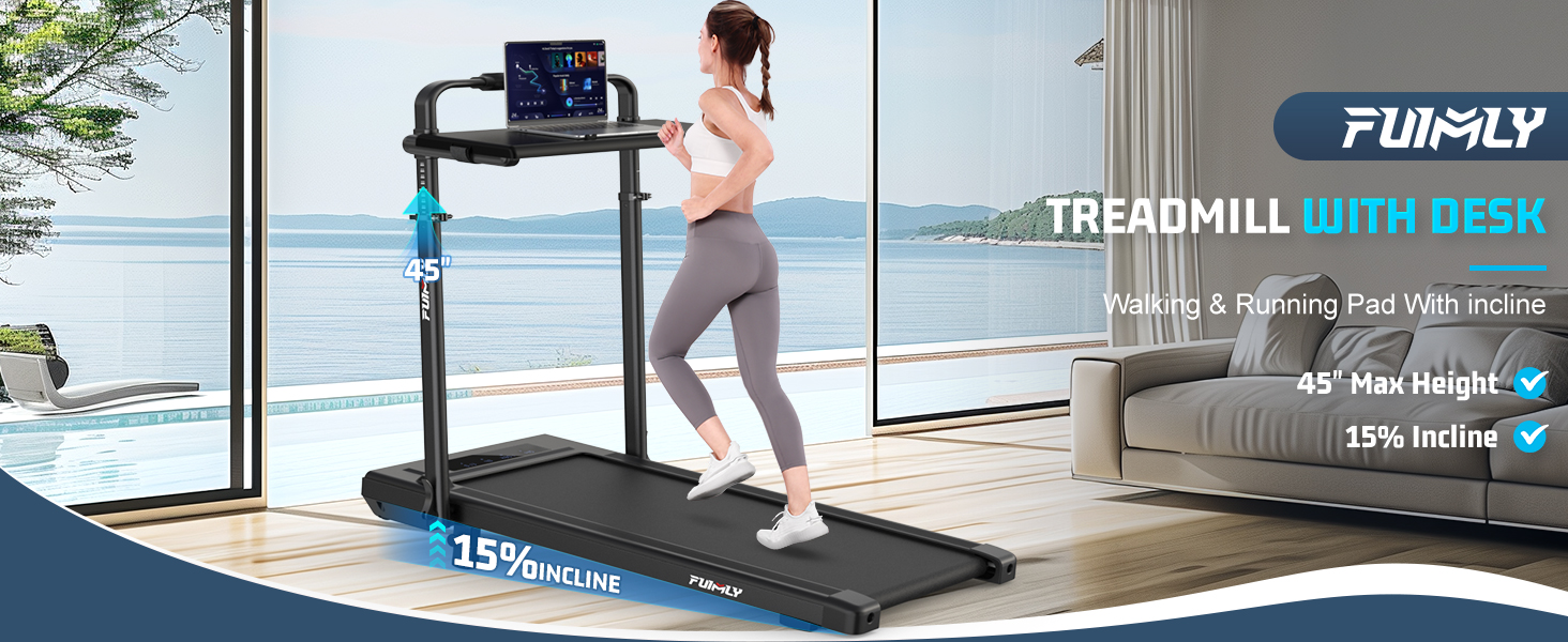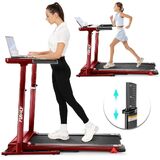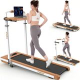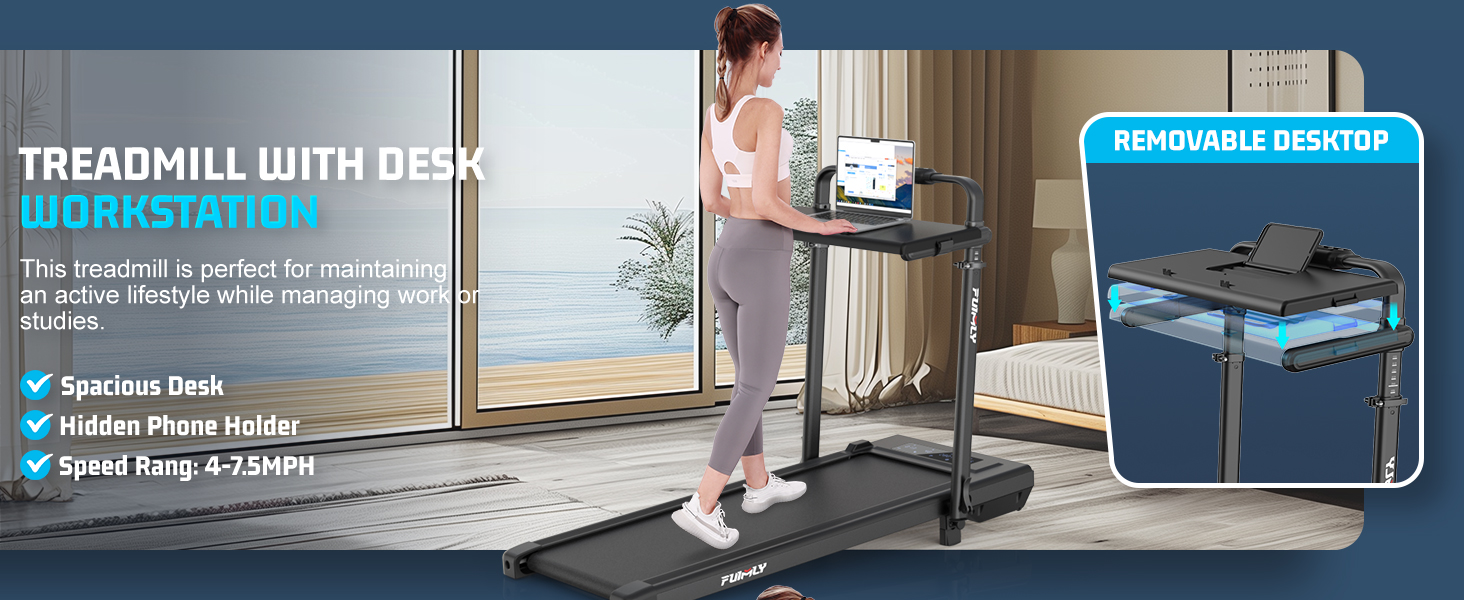 • TREADMILL WITH DESK WORKSTATION REMOVABLE :Equipped with a spacious desk that easily accommodates your laptop, this treadmill allows you to seamlessly switch to work mode, whether you're walking or jogging. The adjustable height desk ensures you can find the perfect position for comfort and efficiency. Perfect for home or office use, this treadmill lets you achieve your fitness goals without sacrificing your work productivity or enjoyment of your favorite media