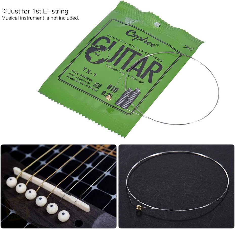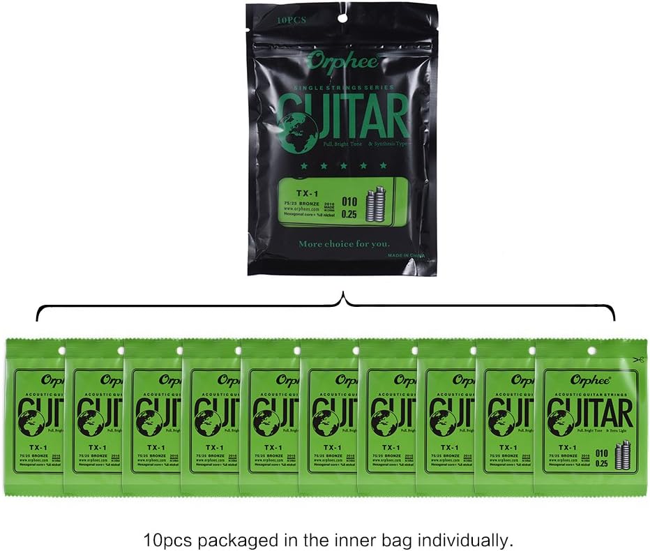 Generic TX-1 سلسلة واحدة بديلة للجيتار الصوتي الشعبي السلسلة الإلكترونية الأولى (.010) 10 عبوات عالية الفولاذ e 75/25 فوسفور برونزي توتر خفيف إضافي
