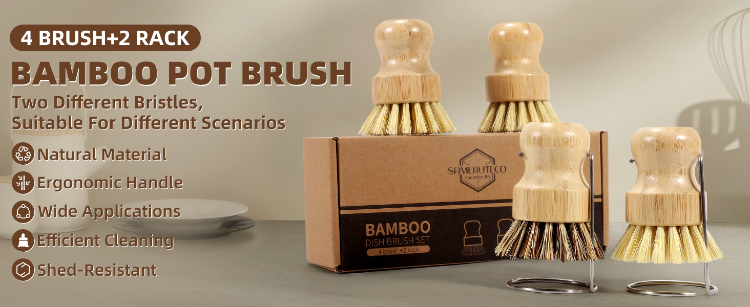 مقابض من الخيزران المتينة والمريحة: تتميز كل فرشاة بمقبض من الخيزران الصلب مع قبضة ناعمة ومريحة تشعرك بالراحة في اليد وتوفر تحكمًا ممتازًا أثناء التنظيف.