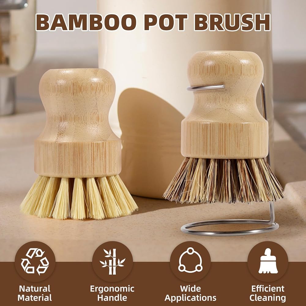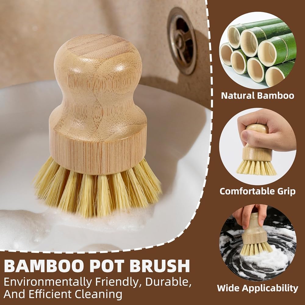 خيار تنظيف طبيعي وخالي من البلاستيك: مصنوعة من الخيزران المتجدد والشعيرات النباتية، مجموعة فرشاة الأطباق هذه توفر بديلاً صديقًا للأرض لأجهزة التنظيف البلاستيكية لتنظيف المطبخ اليومي.