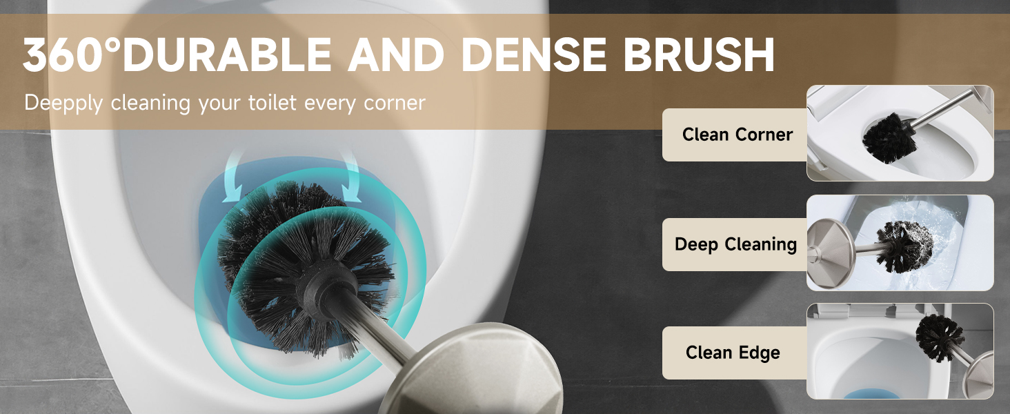 【فرش وحوامل المرحاض الصلبة】تتميز فرش وعاء المرحاض المتينة هذه بتصميم مقبض متكامل من سبائك الألومنيوم، أقوى من الوصلات البلاستيكية. فرشاة المرحاض شديدة التحمل ذات قاعدة معدنية سميكة تضمن الثبات وطول العمر، مما يجعلها مقاومة للانقلاب.
