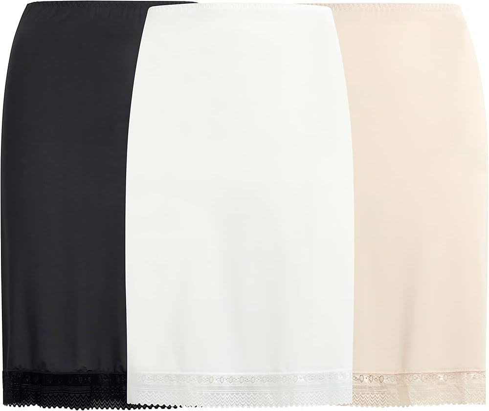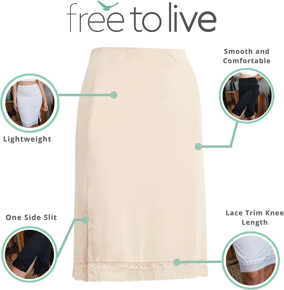 مجموعة من 3 قطع من Free to Live للسيدات نصف منزلقة مع دانتيل، تنورة داخلية بطول فوق الركبة - ممتدة