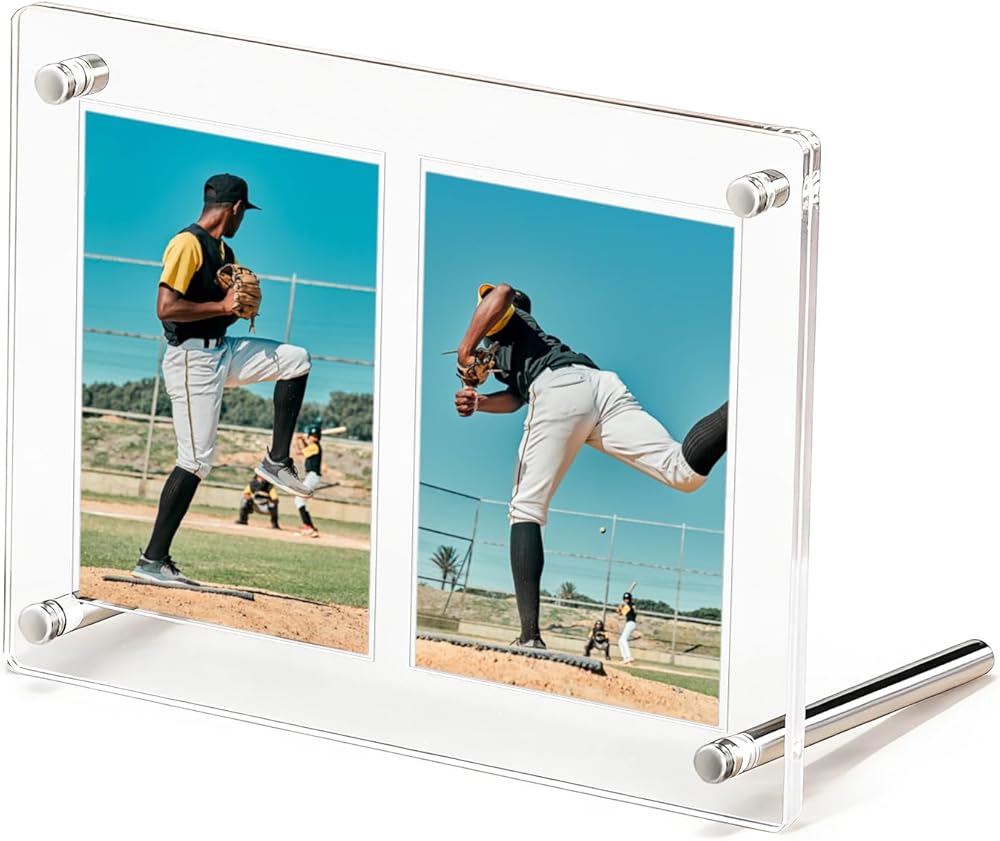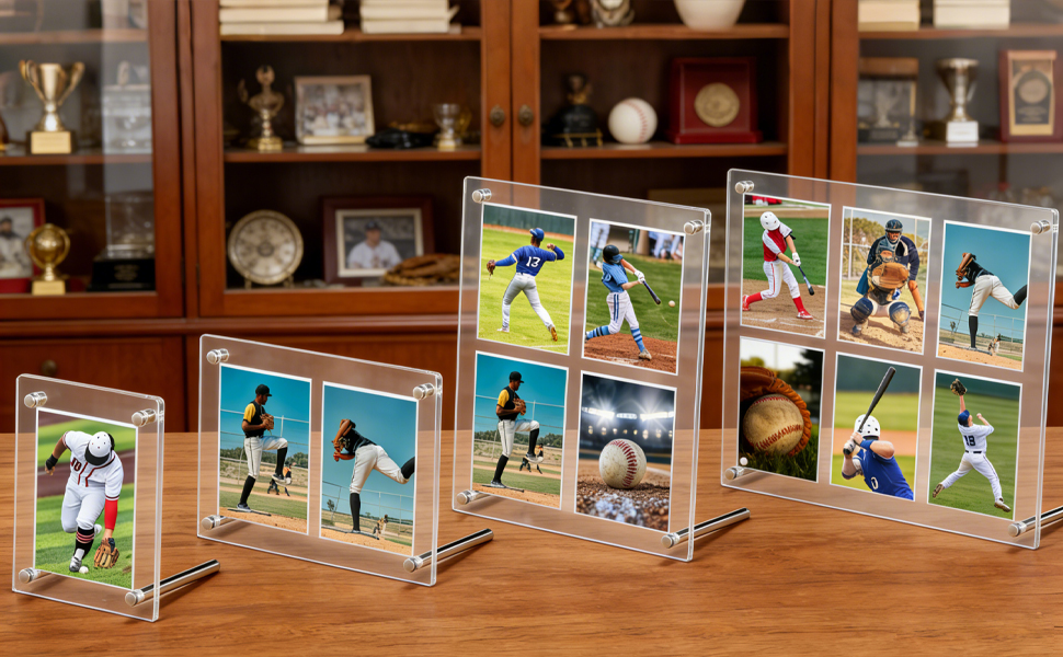 حامل قائم بإطار عرض بطاقة التداول من الأكريليك الشفاف، حافظة عرض بطاقات متدرجة رياضية، واقي بطاقة لبطاقات ألعاب البيسبول وكرة السلة وكرة القدم، وعرض مجموعة الصور والبطاقات الصغيرة (فتحتان)