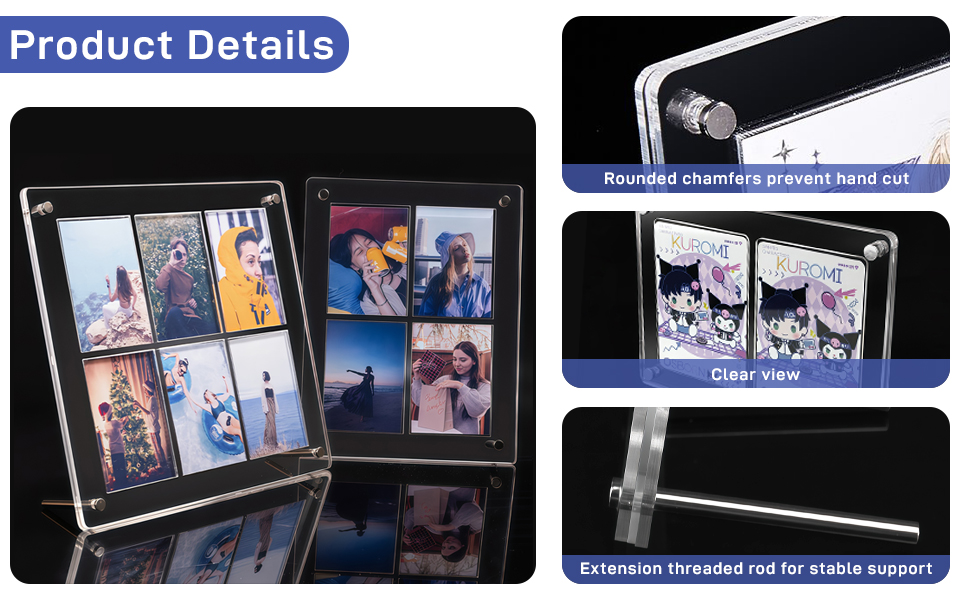 【تجميع سريع】قم بتركيب حامل العرض في دقائق معدودة باستخدام الملحقات اللولبية المضمنة. ما عليك سوى وضع بطاقاتك أو صورك في الفتحات وشد البراغي لإنهاء الإعداد. خالية من المتاعب وفعالة لعرض المجموعة الفورية. ملاحظة مهمة: قم بإزالة الغشاء الواقي الأبيض قبل الاستخدام للكشف عن الألواح الشفافة!!!!!