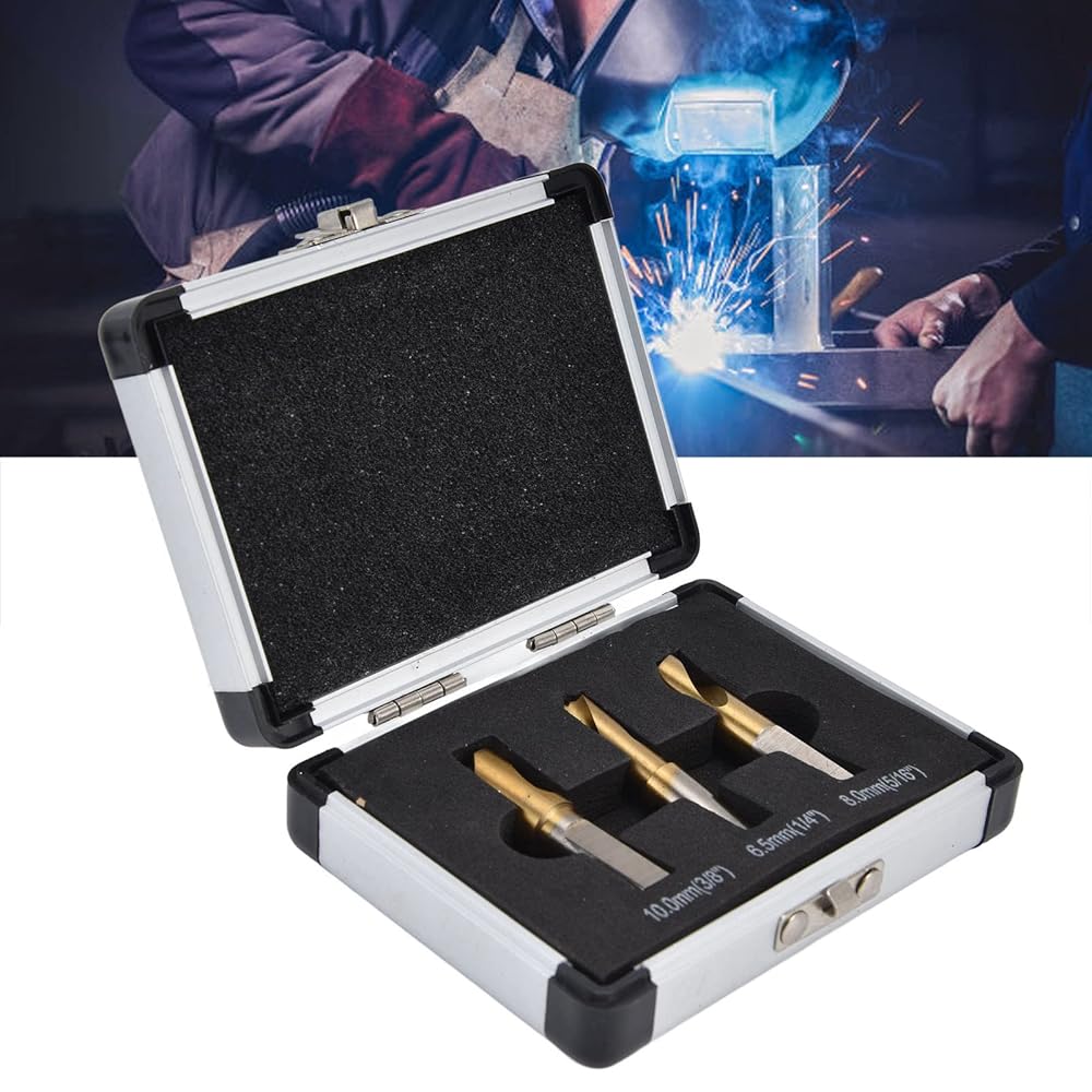 لقمة مثقاب قاطع لحام من الفولاذ القوي عالي السرعة، تحكم سهل في عدم الانزلاق، طلاء حفر سلس، 3 قطع لأزاميل اللحام الموضعي مع مواد تشحيم القطع