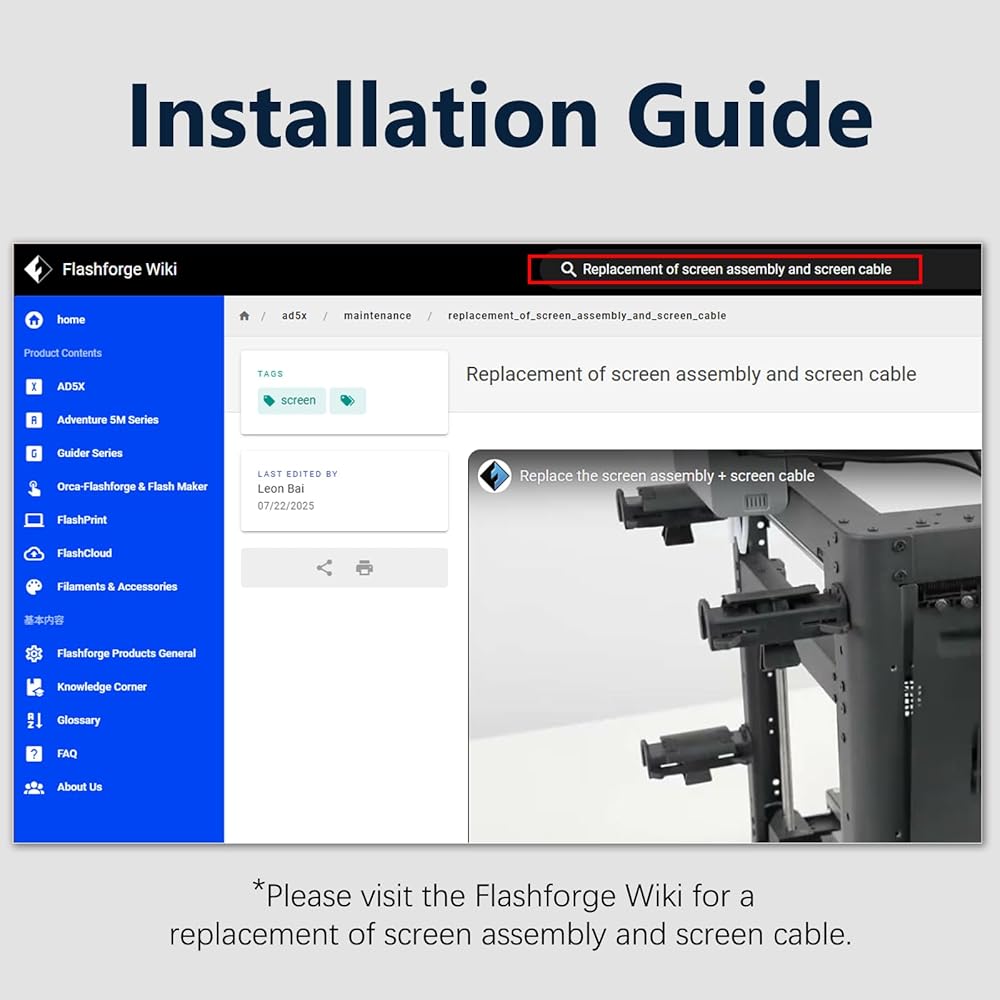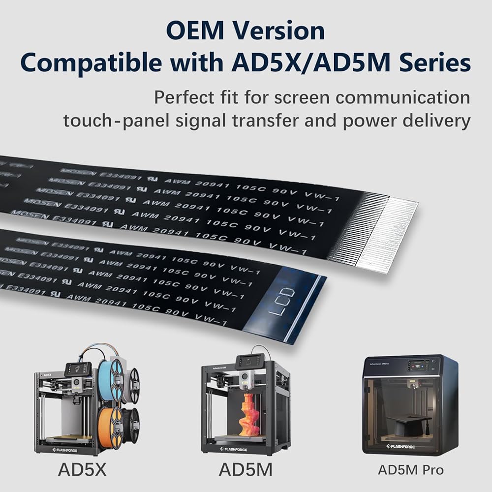 【OEM Version, Compatible with AD5X/AD5M Series】Designed for Flashforge Adventurer 5M, Adventurer 5M pro, AD5X 3d printers, this AD5M/AD5X ribbon cable directly replaces the original LCD cable. Perfect fit for screen communication, touch-panel signal transfer and power delivery