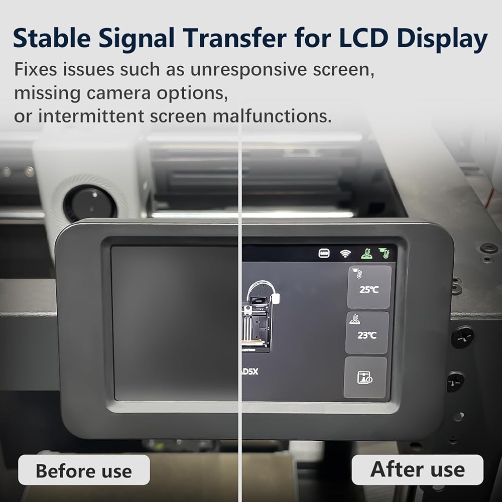【Stable Signal Transfer for LCD Display】This AD5X/AD5M FFC cable ensures smooth data transmission between the LCD screen and the driver board.Ideal for restoring unresponsive displays, missing camera options, or intermittent screen issues