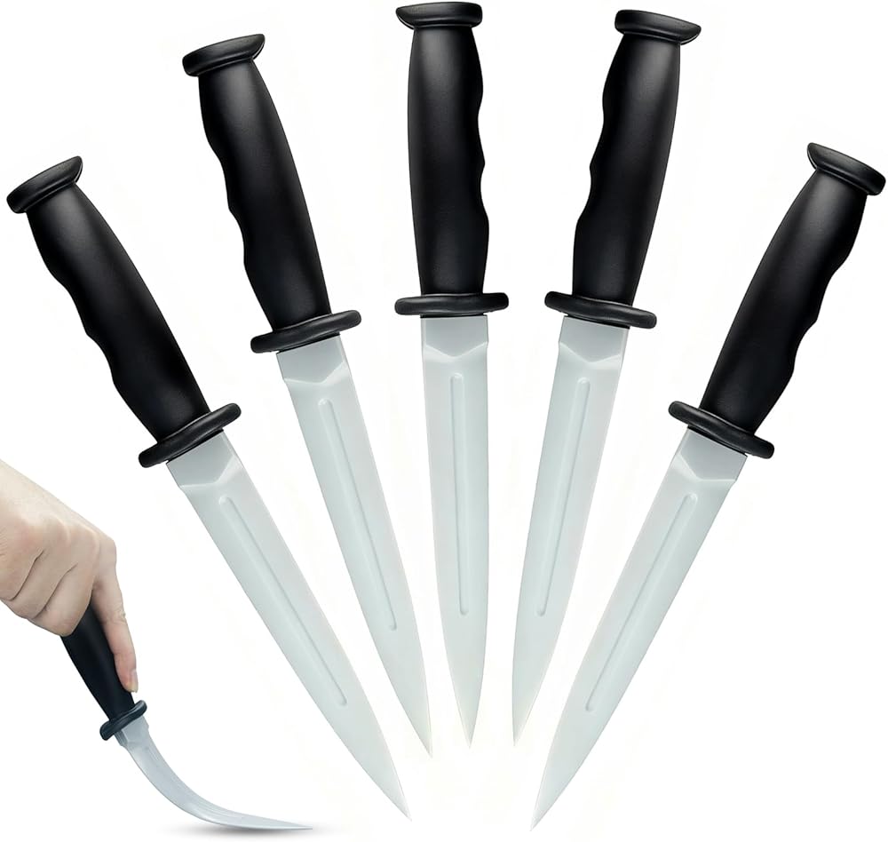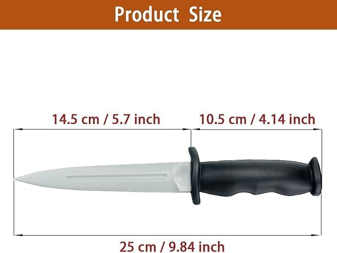 • 【Safety First】: Crafted from soft, flexible rubber, this 9.8" knife prop is completely blunt and harmless, ideal for safe martial arts training, stage acting, or role-play. No sharp edges—perfect for worry-free combat simulations.