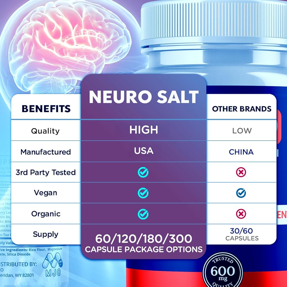 كبسولات الملح العصبي: مكونات طبيعية بالكامل، مصنوعة من مكونات طبيعية عالية الجودة مختارة بعناية.