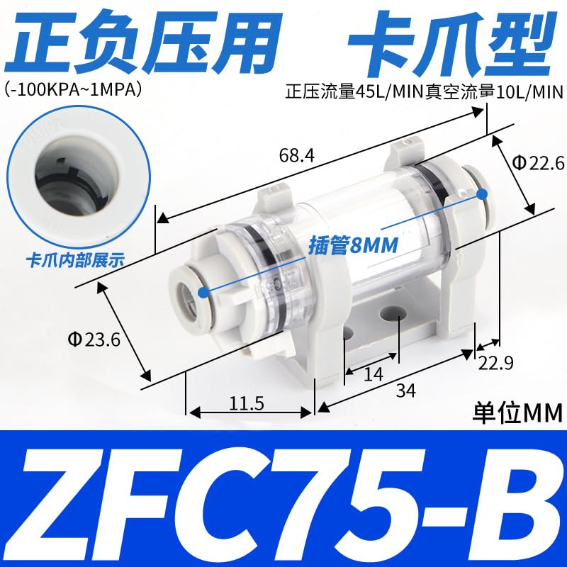 ZFC100-06B هوائي الضغط السلبي خط أنابيب الهواء فراغ تصفية 200-08B خرطوشة ZFC54-B الصغيرة 1 قطعة (ZFC75-B(卡爪型))