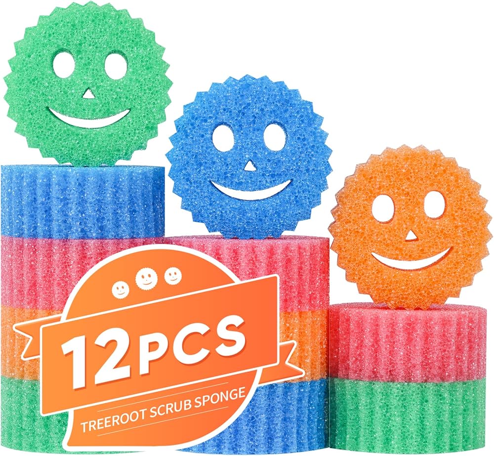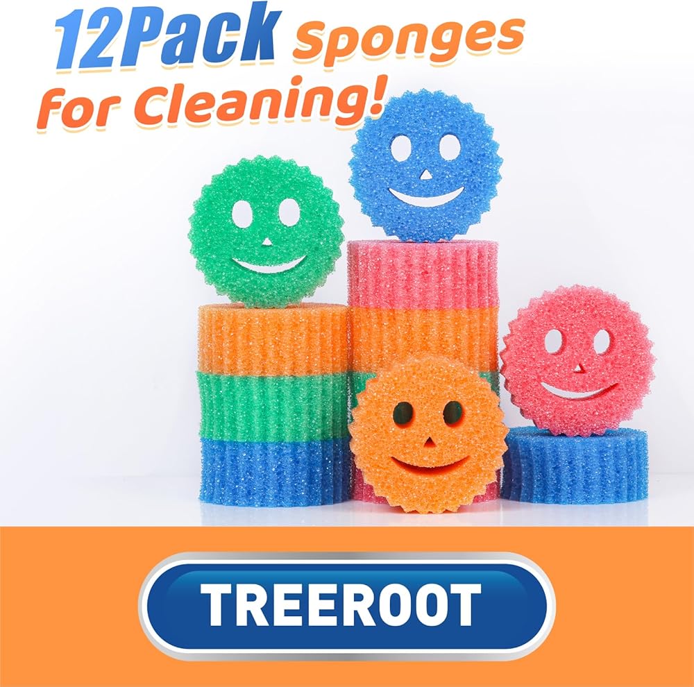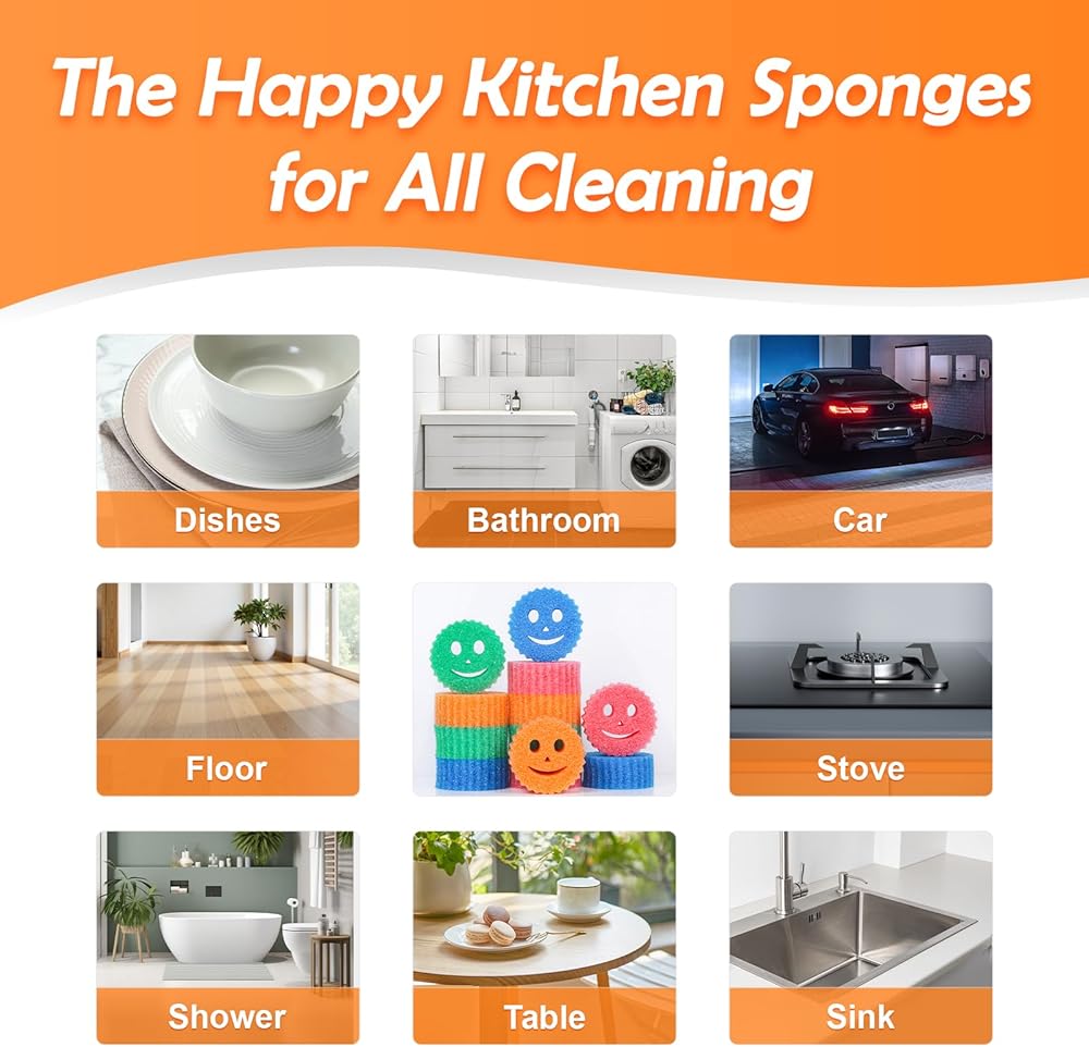 12 إسفنجة تنظيف ملونة مبتسمة، إسفنجة أطباق يمكن التحكم في درجة حرارتها، إسفنجة مطبخ كبيرة للتنظيف، إسفنجة تنظيف متعددة الوظائف للمطبخ والحمام والأرضيات