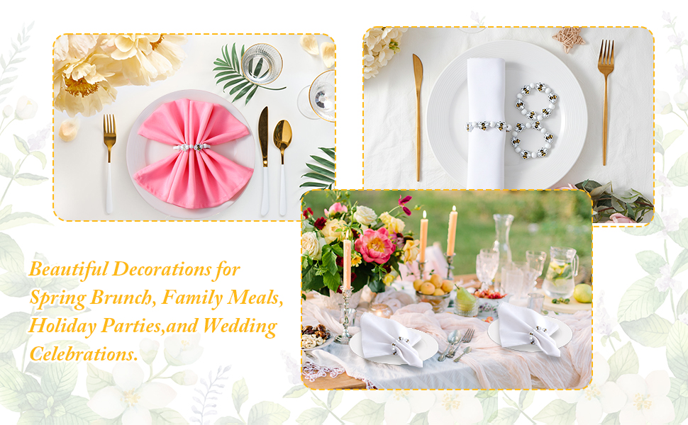 【ديكور متعدد الاستخدامات】: حلقات مناديل النحل هذه مثالية لمجموعة متنوعة من المناسبات، بما في ذلك ديكورات الطاولات في فصل الربيع، وحفلات الحديقة الصيفية، والتجمعات العائلية، والاستخدام اليومي. إنها تضفي لمسة مشمسة وحيوية على أي مكان، مما يخلق جوًا دافئًا ومبهجًا.
