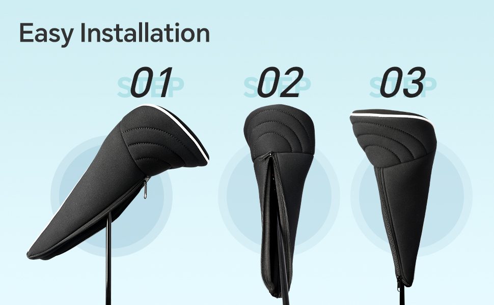 • Long Neck Design: The long neck design is adopted to provide comprehensive protection for the clubs, jointly protect the shaft and ensure that the clubs do not slip. In addition, our golf driver head covers feature a comfortable zipper closure, which is also more flexible to put on and take off