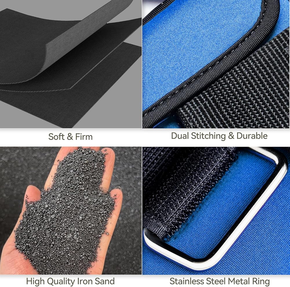 Premium Materials: The leg weights are made with high-quality fabric for a comfortable and sweat-absorbent workout. The small sandbags inside are double-layered, preventing sand leakage and rust. The stainless steel D-ring is rust-resistant, even with sweat or water exposure. These weights have enhanced stitching and a secure magic-hook closure for durability.