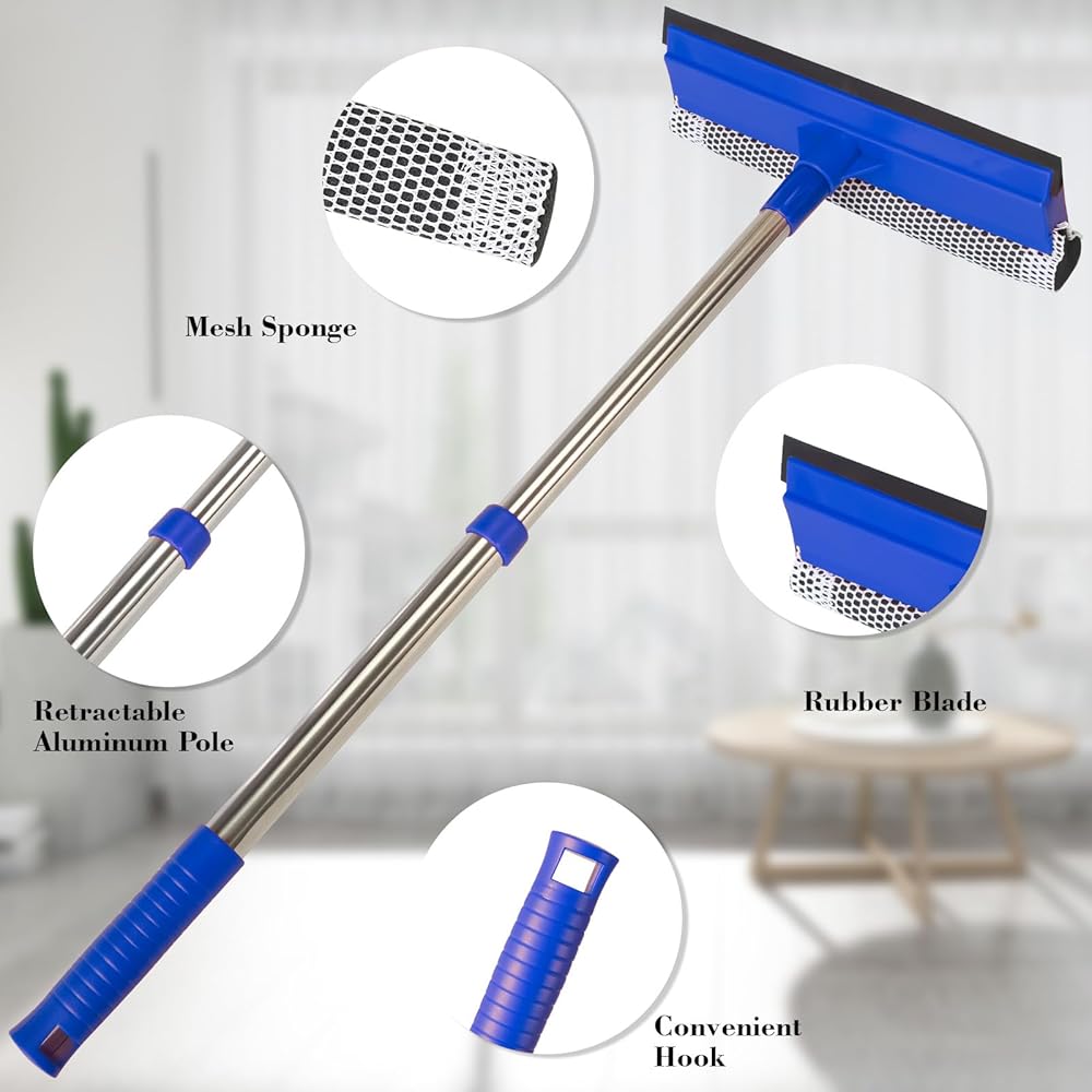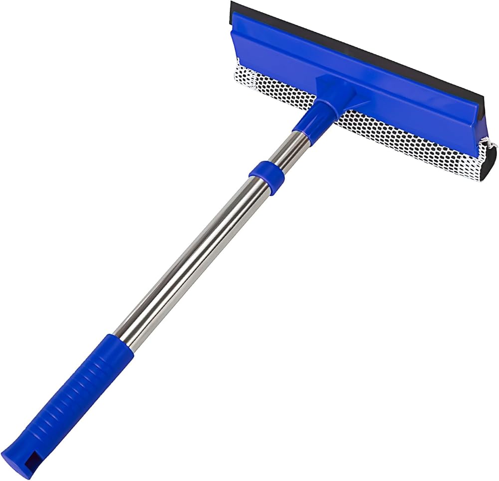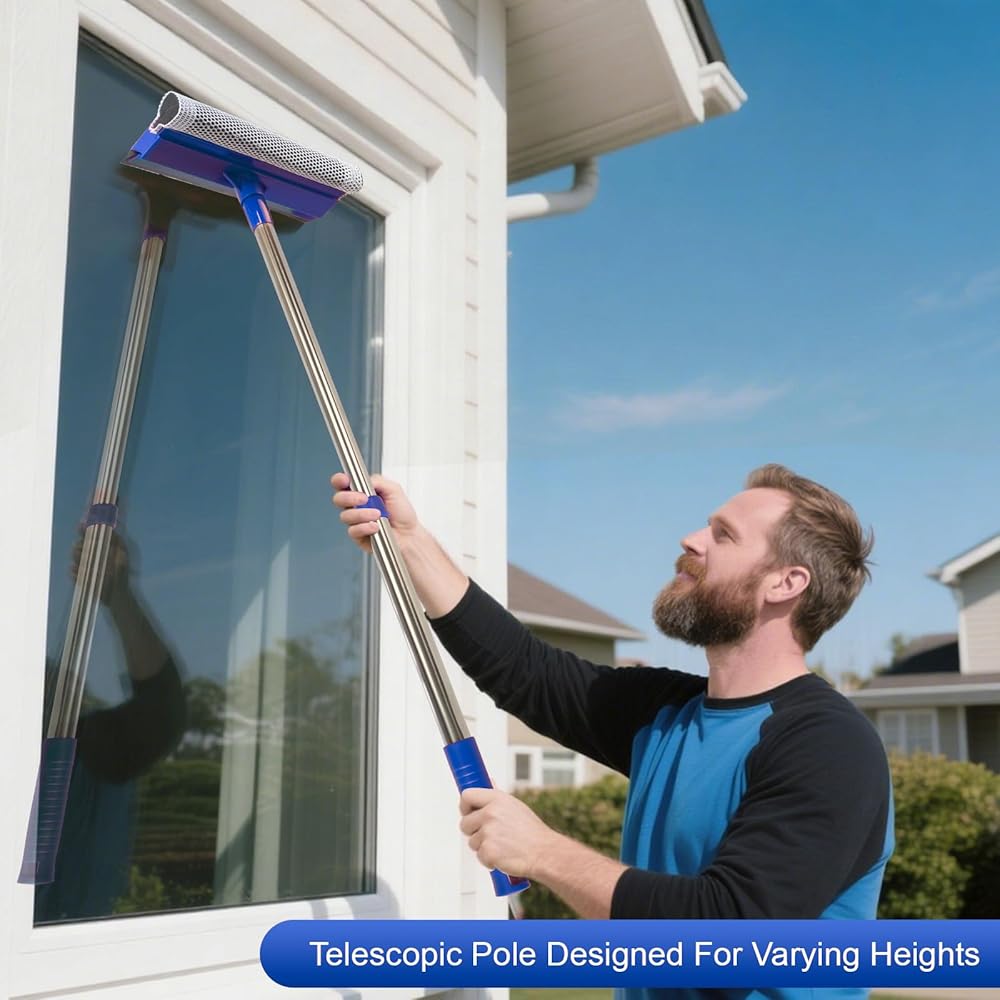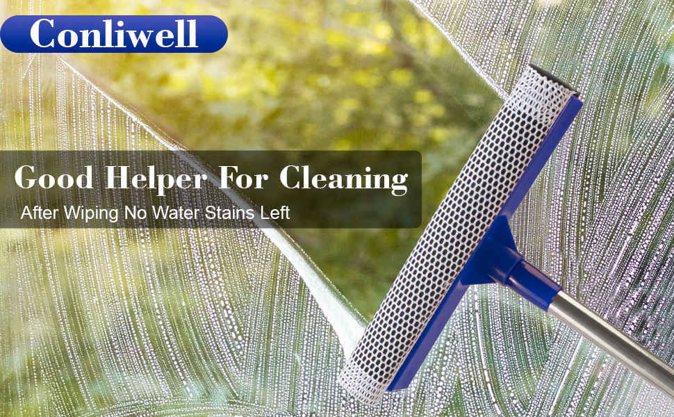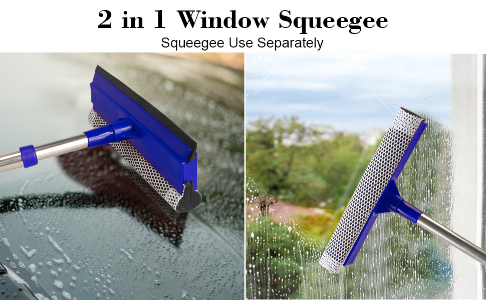 [نظام تنظيف مزدوج 2 في 1] يعمل الشريط الإسفنجي الناعم على إزالة الأوساخ والأوساخ، بينما تقوم الشفرة المطاطية عالية الجودة بإزالة الماء بسرعة - معًا يزيلان البقع وعلامات الماء دون عناء في حركة واحدة سلسة.