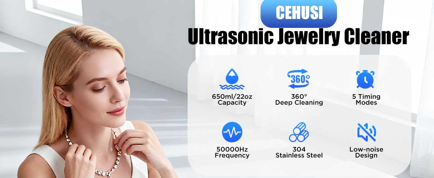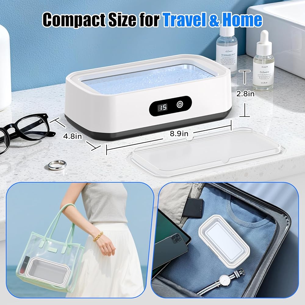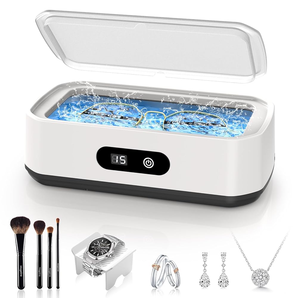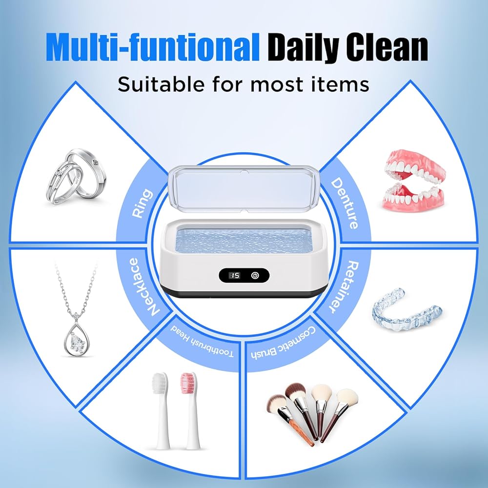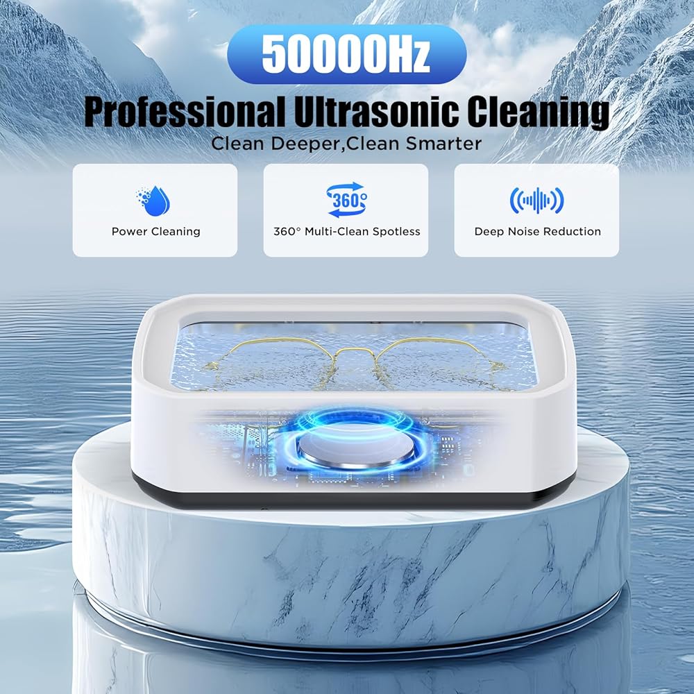 • منظف ​​بالموجات فوق الصوتية عالي الكفاءة: تولد الموجات فوق الصوتية القوية مليارات الفقاعات الدقيقة، وتنظف بعمق حتى الزوايا التي يصعب الوصول إليها، وتستعيد على الفور اللمعان والوضوح الرائع لمجوهراتك الثمينة ونظاراتك. استخدميه مع محلول التنظيف للحصول على نتائج مذهلة أكثر!