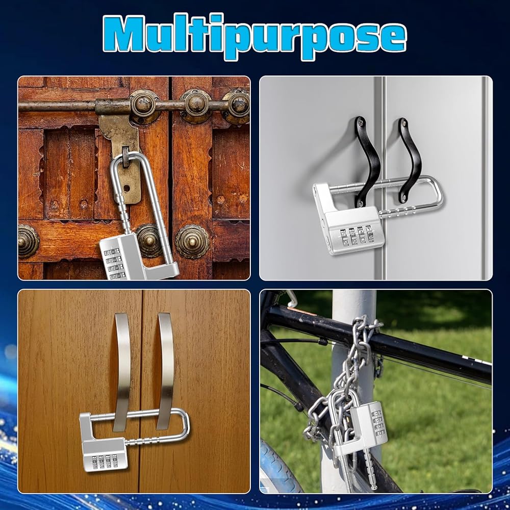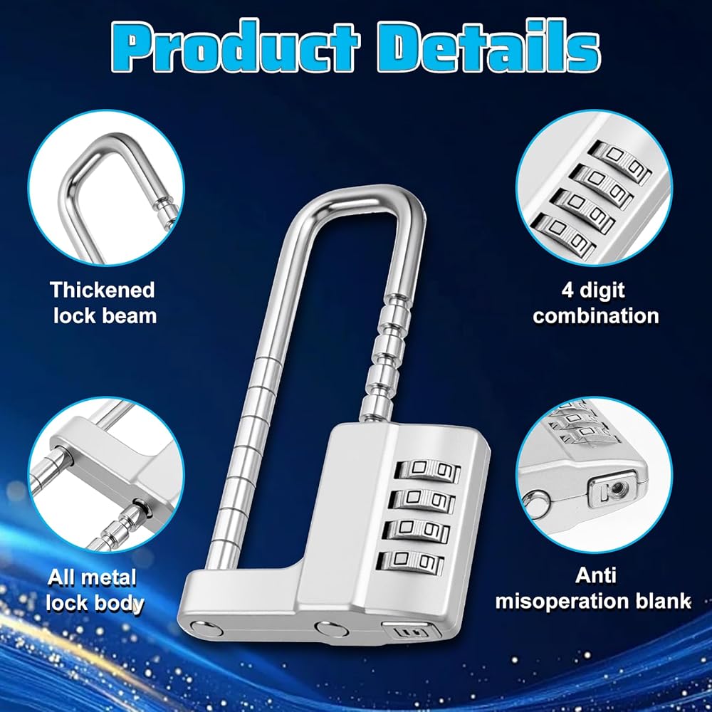 2 قطعة قفل خزانة مكون من 4 أرقام رمز على شكل حرف U، قفل قابل للتعديل من الفولاذ المقاوم للصدأ مع رمز، قفل معدني طويل مقاوم للماء قابل للسحب لأسوار الكلية في الهواء الطلق وخزانة رياضية وصالة الألعاب الرياضية