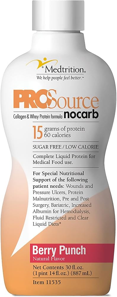 ProSource NoCarb Liquid Protein (Neutral) offers a simple, effective way to increase your daily protein intake—without added sugar. Each 30 mL serving delivers 15 grams of complete protein from a high-quality blend of collagen and whey protein isolate, providing 100% of essential amino acids. This sugar-free supplement is clinically supported to help raise albumin levels in hemodialysis patients and is perfect for oral or tube feed administration. Enjoy the flexibility to drink it straight or mix it into your favorite shakes, soups, or soft foods. ProSource NoCarb comes in a variety of flavors, is lactose- and gluten-free, and fits seamlessly into your daily routine.