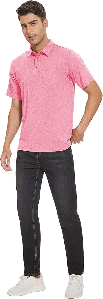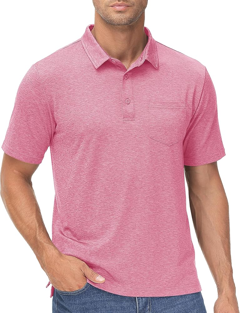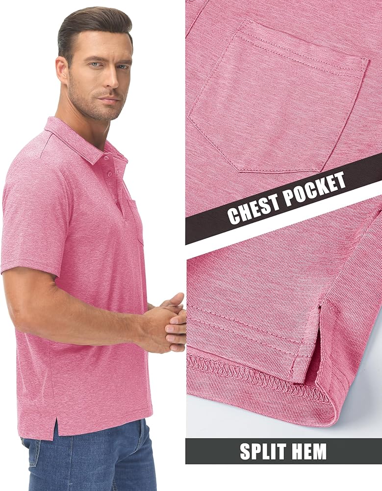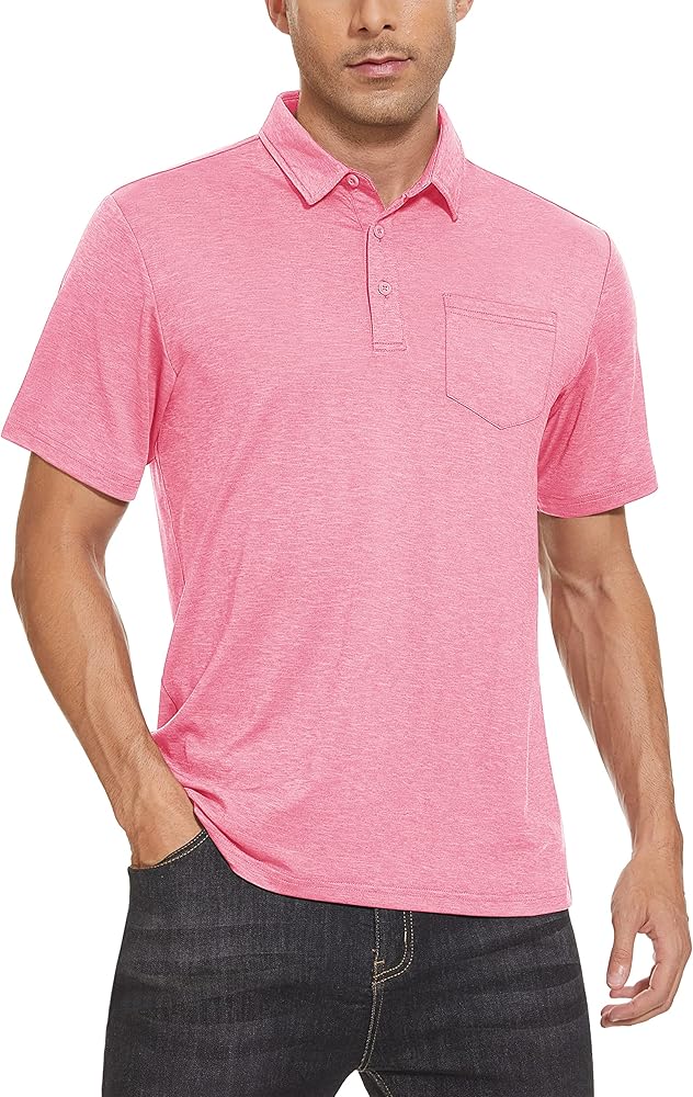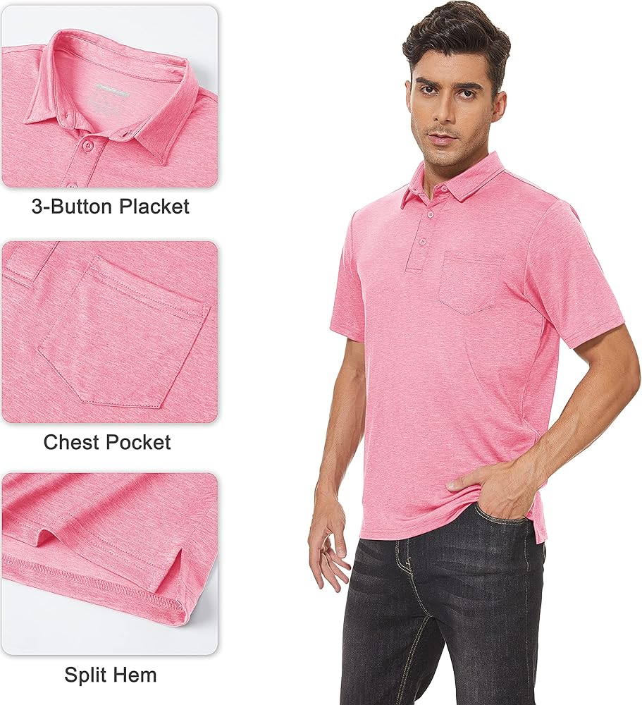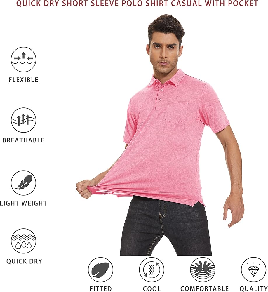 • التصميم - قمصان بولو بأكمام قصيرة مع فتحة بثلاثة أزرار وجيب واحد، وياقة كلاسيكية منتشرة ورقبة خالية من العلامات؛ توفير الراحة القصوى أثناء ممارسة التمارين في الهواء الطلق؛ تعمل الدرزات المسطحة والرقبة الخالية من العلامات على تقليل الاحتكاك وزيادة الراحة.