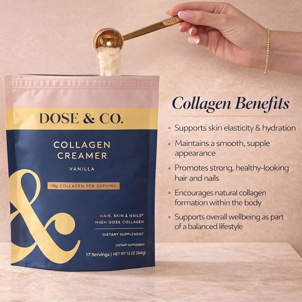 دوز آند كو. مسحوق كريمر الكولاجين بالفانيليا، 12 أونصة | الكولاجين البقري المتحلل من النوع الأول والثالث مع 11 جرام بروتين لكل وجبة | يدعم الشعر والبشرة والأظافر | التوافر البيولوجي العالي، غير معدل وراثيًا، خالي من الغلوتين