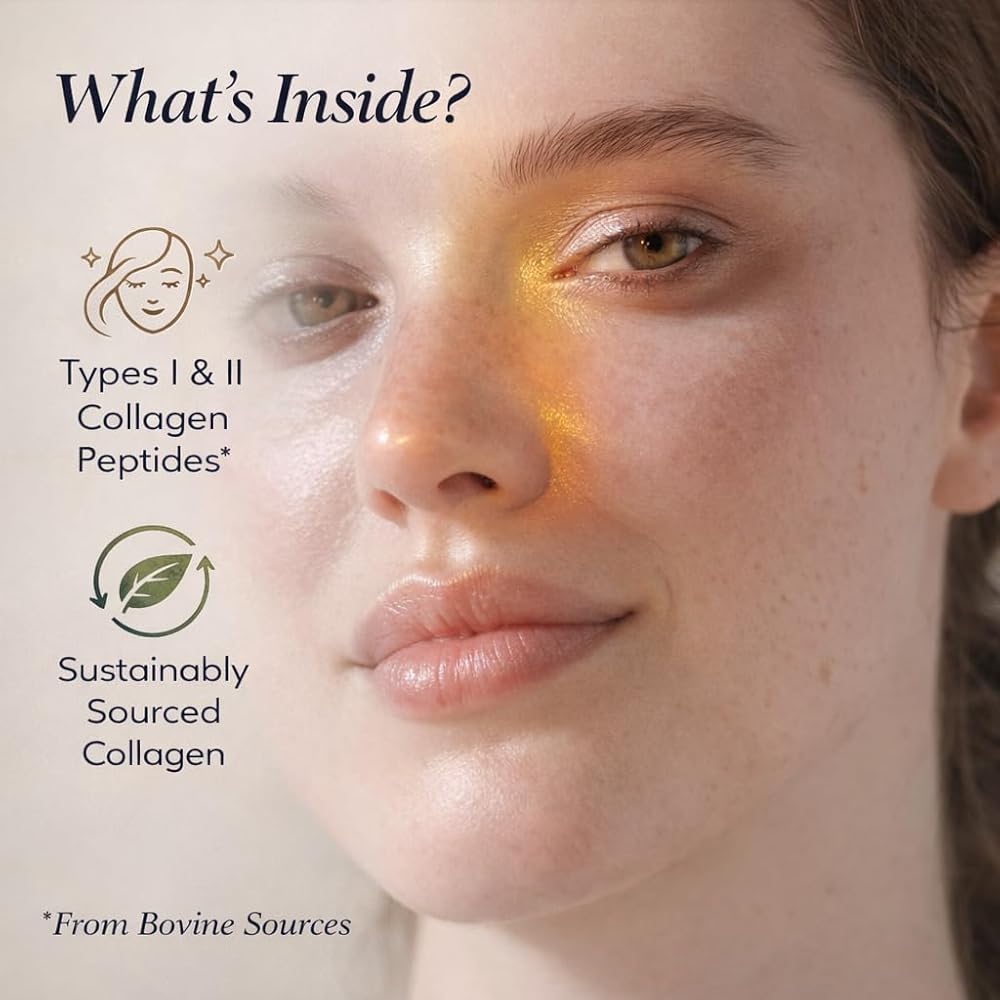 فوائد تجميلية متعددة: تم تركيبه بخبرة من النوعين الطبيعي الأول والثالث من ببتيدات الكولاجين البقري لدعم لون البشرة ومرونتها وترطيبها للحصول على مظهر أكثر إشراقًا وتغذية. يساعد في الحفاظ على حجم الشعر وقوة الأظافر.* لاحظ 90% من المستخدمين تحسنًا في جودة البشرة، وأبلغ 91% عن أظافر أقوى وأطول.