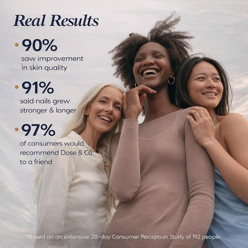 The Dose & Co. الفرق: أسسها أخصائي تغذية؛ بدعم من الأطباء وأطباء الجلد وأخصائيي التجميل، نحن نؤمن بأن الجمال يبدأ من الداخل. لهذا السبب يتم تصنيع مكملات الكولاجين لدينا بعناية باستخدام مكونات مدعومة علميًا، وتتناسب بسهولة مع الحياة الحقيقية. جرعة يومية يمكنها إحداث تغيير حقيقي ودائم