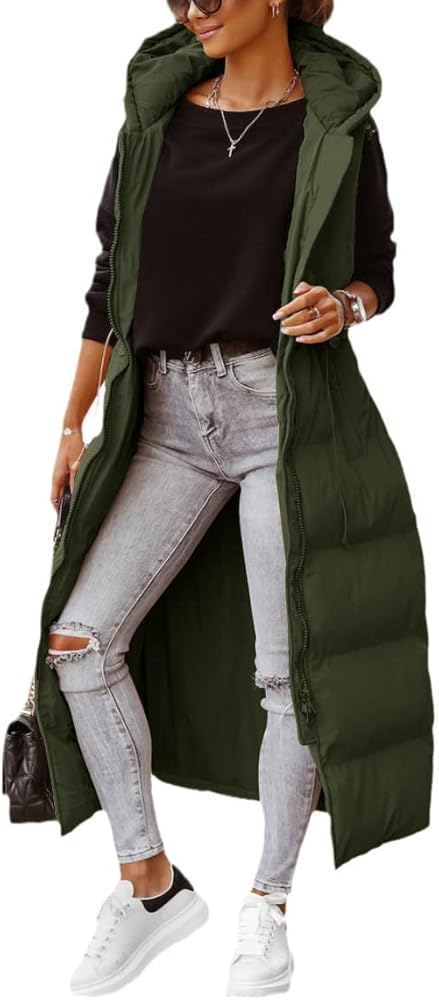 الخامة - خامة فائقة وممتازة في الصناعة، مصنوعة من مادة ناعمة وخفيفة الوزن، 100% بوليستر. سترة نسائية شتوية طويلة مع غطاء للرأس بدون أكمام، معطف قطني دافئ مع جيوب، سترة مبطنة، سترة قطنية، سترة مبطنة للاستخدام الخارجي.