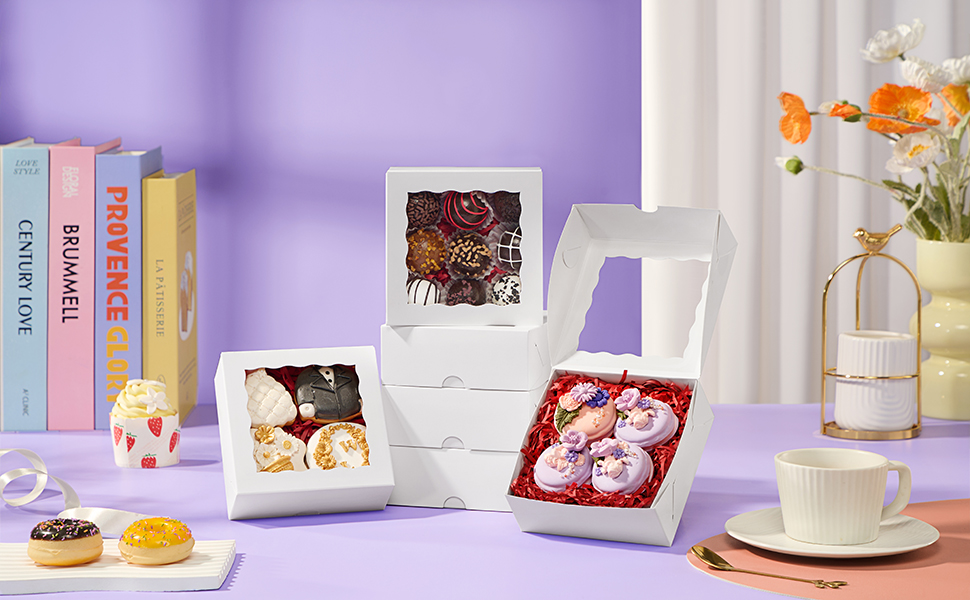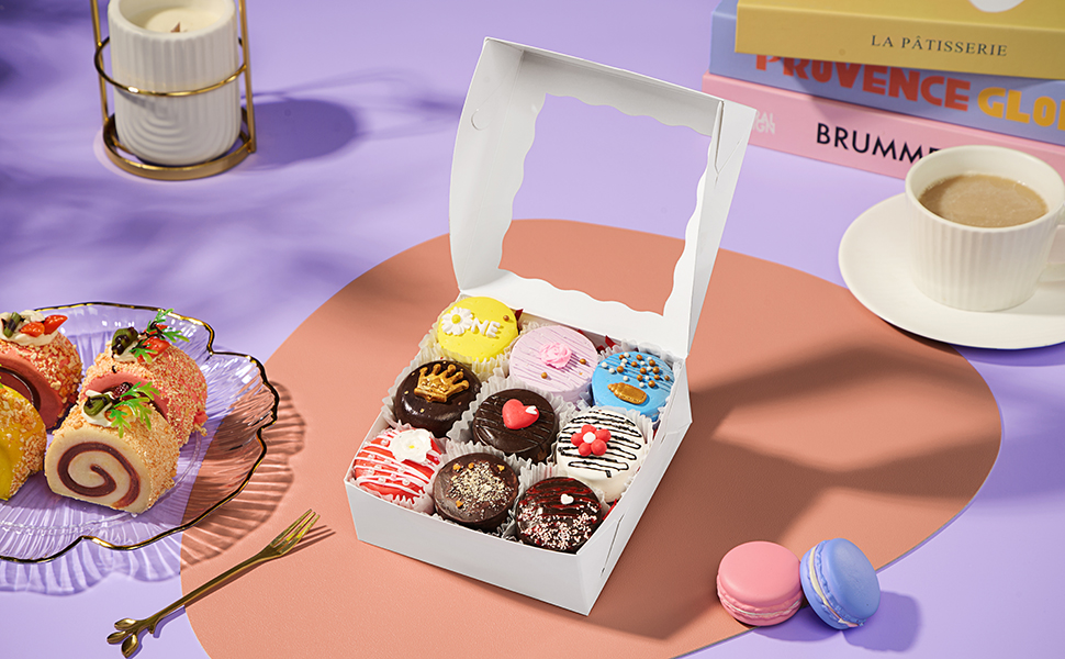 - 【التصميم】: صناديق بسكويت مع نافذة شفافة، مثالية لإظهار طعامك اللذيذ، وتبدو أكثر جمالاً وأناقة.