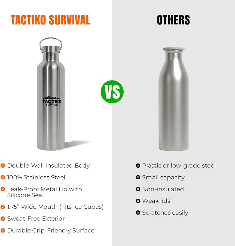 تقليل الزجاجات البلاستيكية ذات الاستخدام الواحد: مصممة للاستخدام على المدى الطويل، للمساعدة في تقليل الاعتماد على الزجاجات ذات الاستخدام الواحد. تاكتيكو هي شركة أمريكية صغيرة تركز على المنتجات عالية الجودة. يتضمن ضمانًا محدودًا لمدة عام واحد.