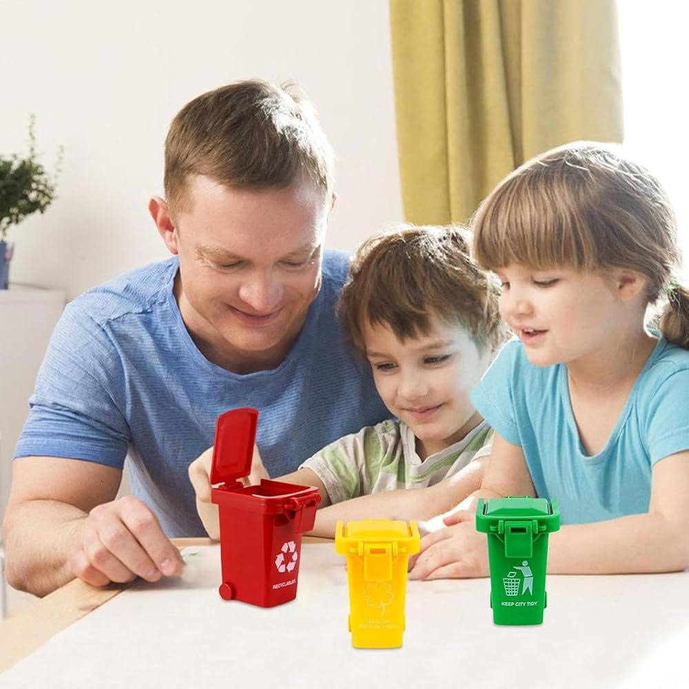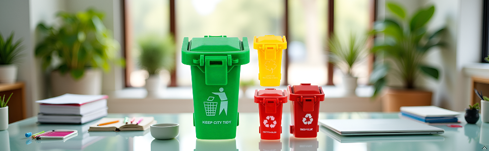 - مجموعة متعددة الاستخدامات: تتضمن العبوة 3 صناديق إعادة تدوير مصغرة بعجلات وأغطية، مثالية لتنظيم المكتب والتخزين.