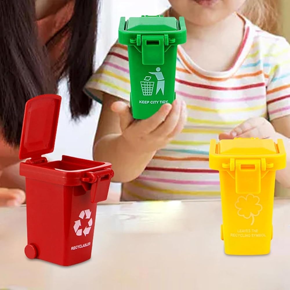 3 قطع سلة مهملات صغيرة ملونة للمكتب، حامل أقلام قمامة القمامة، حامل قلم رصاص سلة إعادة التدوير، علب قمامة شاحنة القمامة المصغرة، لعبة شاحنة سلة المهملات الصغيرة الفريدة مع عجلات غطاء