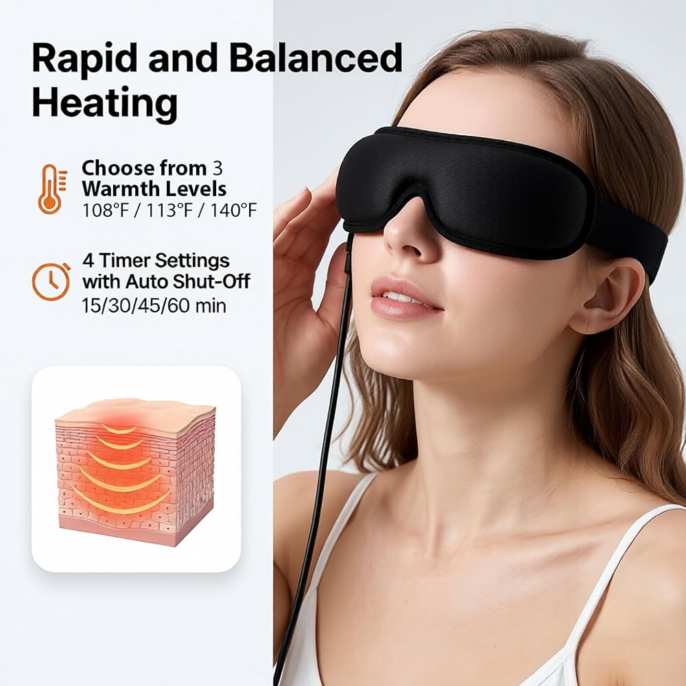 قناع العين الساخن للعين الجافة: ضغط دافئ مع وسادة USB، حرارة ثابتة - يخفف من جفاف العيون ويخفف التوتر، والعينين، والعيون المنتفخة والتوتر - قناع العين المريح للمساعدة في النوم والسفر بالطائرة