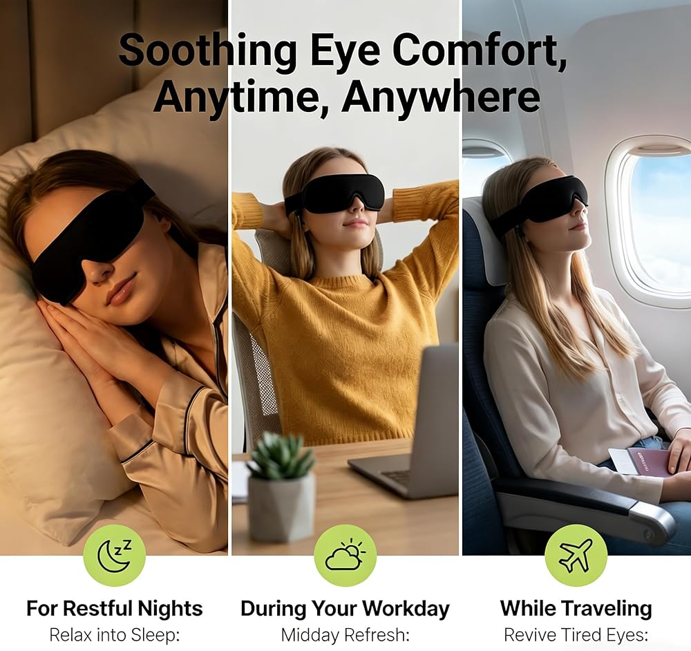 تسخين سريع ومتسق للتخفيف العميق: يسخن قناع العين الساخن بسرعة إلى درجة حرارة ثابتة، مما يوفر حرارة رطبة مهدئة مستمرة لتخفيف جفاف العين، وإجهاد العين، والتهاب الجفن، والشعيرات، والهالات السوداء، وانتفاخ العين، وصداع الجيوب الأنفية، والرعاية بعد العمليات الجراحية.