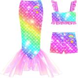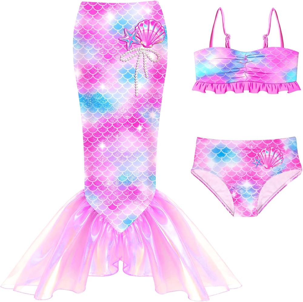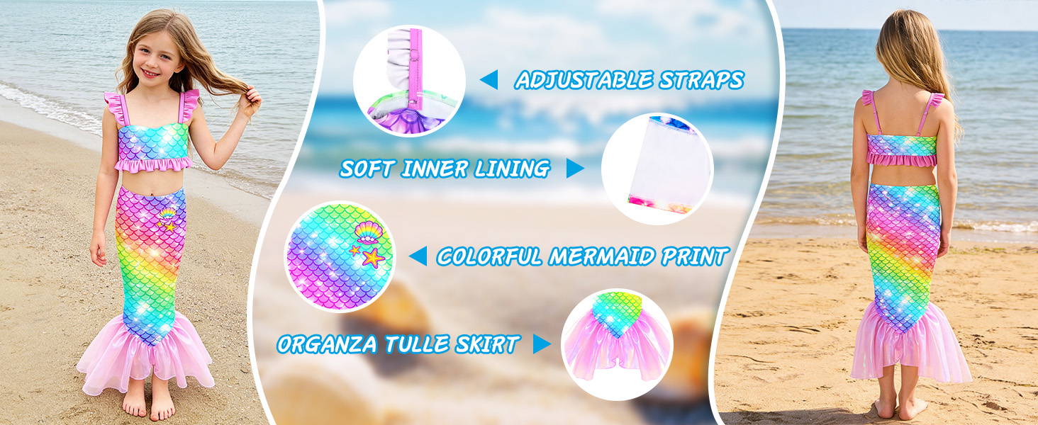مجموعة حورية البحر النابضة بالحياة المكونة من 3 قطع: أطلق العنان لخيال طفلك مع مجموعة البكيني المذهلة هذه المكونة من 3 قطع، والتي تتميز بجزء علوي مكشكش أنيق، وأجزاء سفلية متطابقة، وتنورة رائعة على شكل سمكة من الأورجانزا. تخلق الأنماط الرائعة والألوان المتلألئة مظهرًا واقعيًا لحورية البحر، مما يجعلها ملابس السباحة المثالية للفتيات لتميزها.