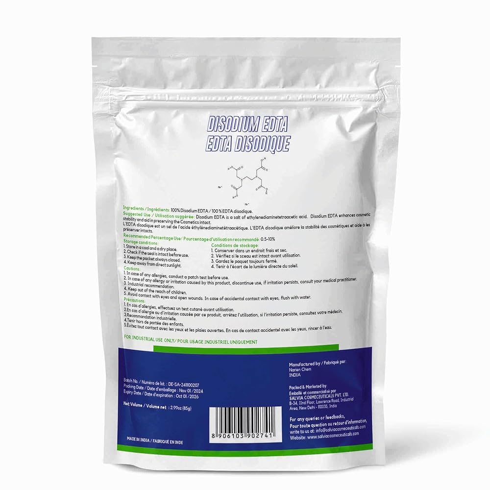 كيفية الاستخدام في التركيبات التي يمكنك صنعها بنفسك: أضف ثنائي الصوديوم EDTA إلى المرحلة المائية في تركيبتك. يذوب بشكل أفضل في الماء الدافئ ويمكن دمجه مبكرًا للتوزيع المتساوي.