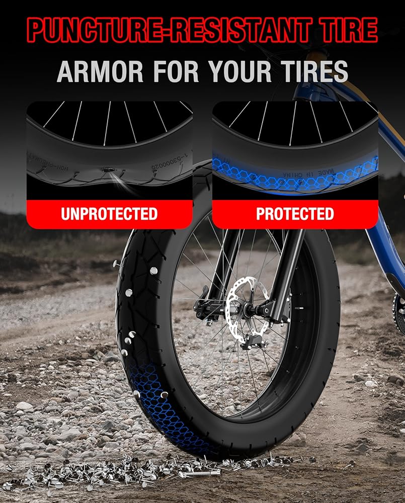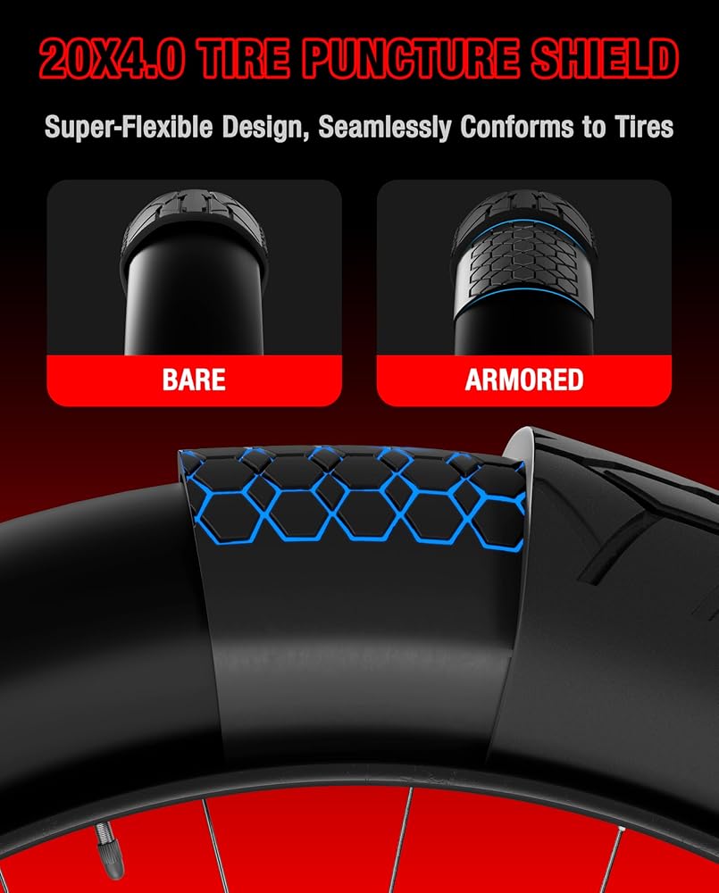 إدراج إطار 20 × 4.0، إطار دراجة مضاد للثقب، واقي بطانة إطار دراجة كهربائية مقاوم للثقب، يوقف الشقق من الأشواك، الزجاج، متوافق مع الدراجات الإلكترونية، دراجات الإطارات الدهنية، الدراجات الجبلية، قطعة واحدة
