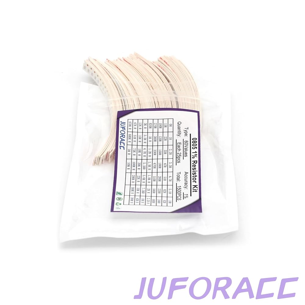 • JuForAcc 0805 Smd Resistor Kit Package: 1500 PCS (Each Value is 25pcs) For 1 Kit (60 Resistance X Each Value 25 PCS = 1500PCS Kit).
