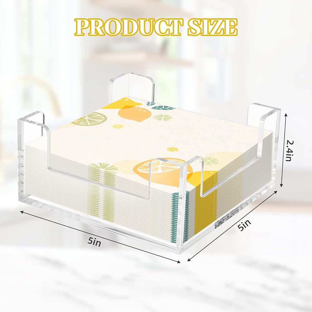 Effortless Single-sheet Access: The acrylic cocktail napkin holder features a four-side opening design for quick one-hand retrieval, while the acrylic napkin holder keeps stacks tidy and prevents accidental spills, convenience to your daily routine