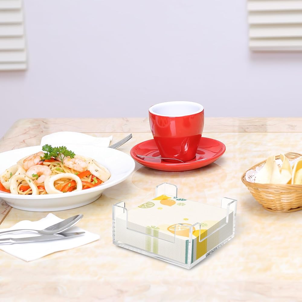 Our napkin holder combines practicality with timeless design for clutter-free spaces.Our acrylic napkin holder offers exceptional durability and a modern, clear design that fits seamlessly into any setting. It is easy to use, simple to clean, and ensures that your napkins are always within reach