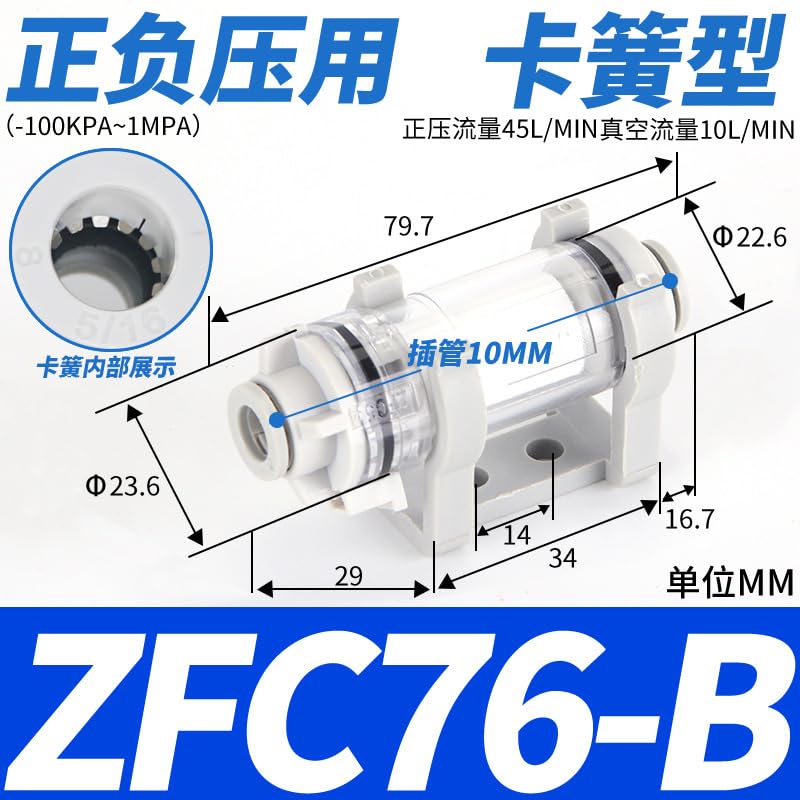 ZFC100-06B فلتر تفريغ الهواء لخط أنابيب الضغط السلبي الهوائي 200-08B خرطوشة ZFC54-B صغيرة 1 قطعة (ZFC76-B(卡簧型))
