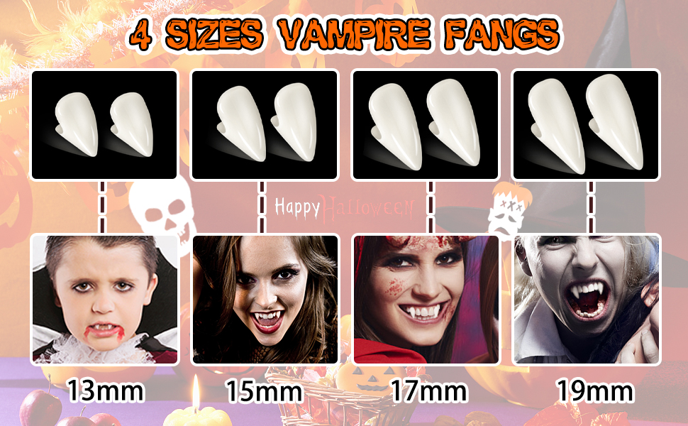 الكمية: يوجد 24 زوجًا من أسنان مصاصي الدماء في العبوة. كل حجم لديه 6 أزواج.