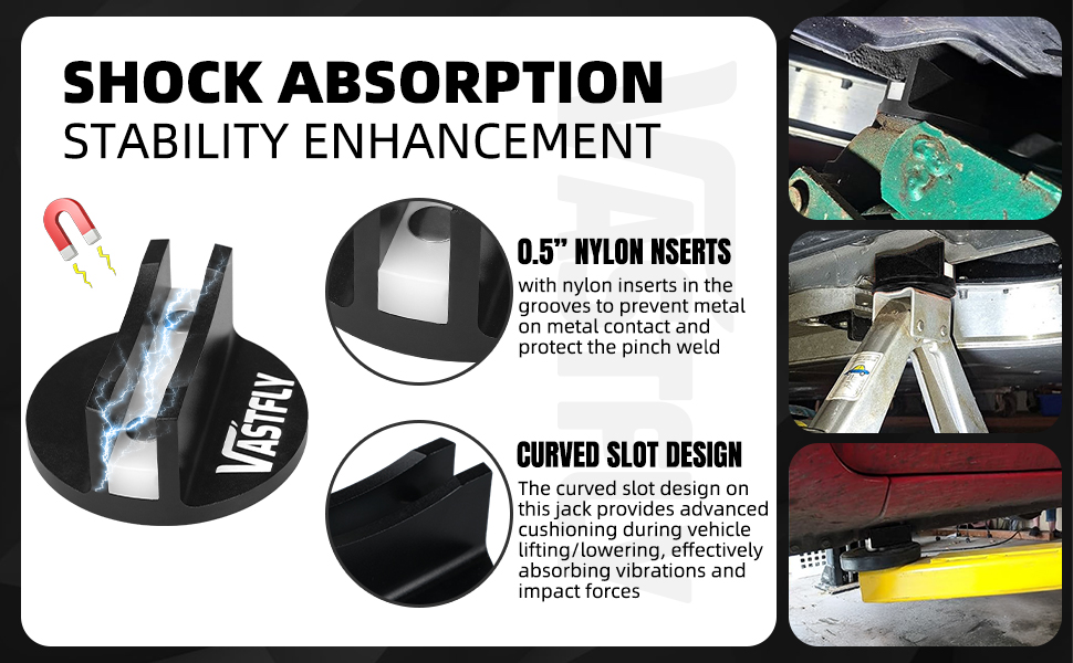 🔰 نظام وسائد جاك العالمي وسادات جاك للتوافق مع مقبس الأرضية ومقبس الزجاجة. فتحة مقاس 2.7 بوصة × 0.47 بوصة تناسب جميع المصاعد القياسية - سيارات السيدان إلى الشاحنات الثقيلة. لا حاجة إلى أدوات خاصة بالنموذج.