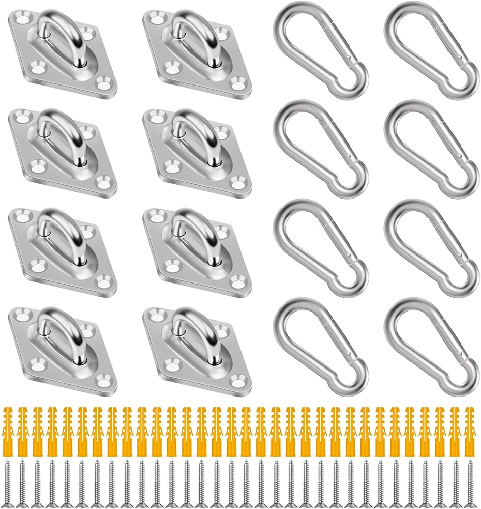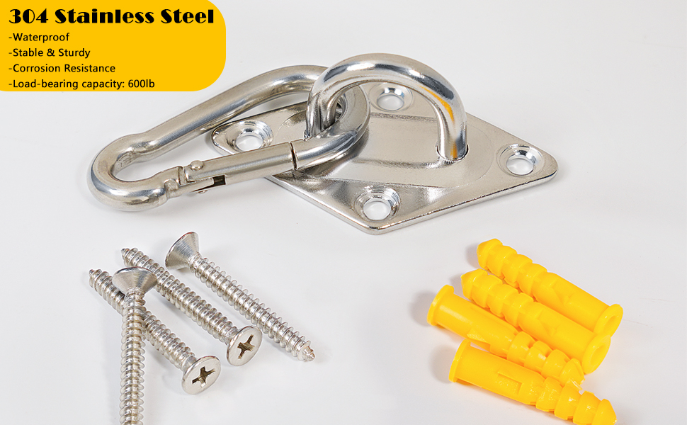 تركيب سهل وسريع: تركيب خطاف التعليق بالسقف هذا بسيط وسهل للغاية، كل ما عليك هو إدخال أنبوب التمدد البلاستيكي واستخدام البراغي المرفقة لتأمين خطافات العين المربعة!