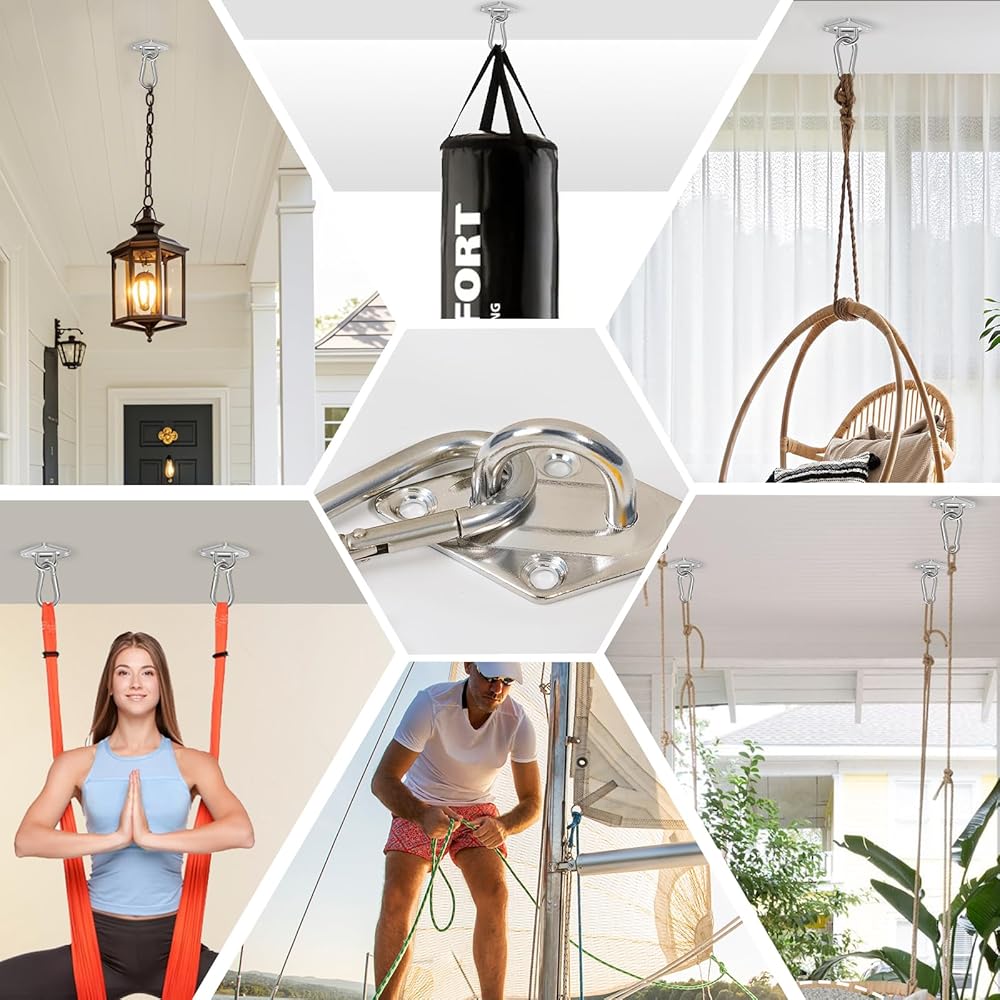 【سعة حمل 4800 رطل】توفر خطافات الأرجوحة شديدة التحمل قدرة تحمل علوية لمساعدتك على تحقيق المهمة المثالية (600 رطل لكل خطاف) ج